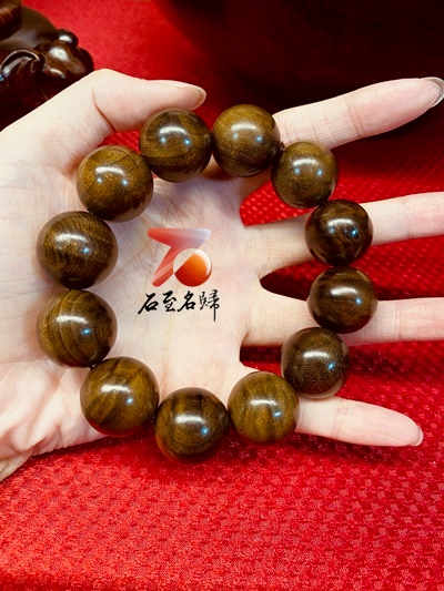 貴州金絲楠小葉楨楠陰沉綠料【滿水波紋20mm手珠】