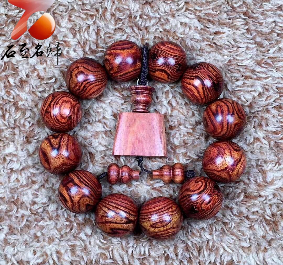 鼎藏 海南黃花梨老料 鳳尾紋+瘤疤20mm手珠 重量60克