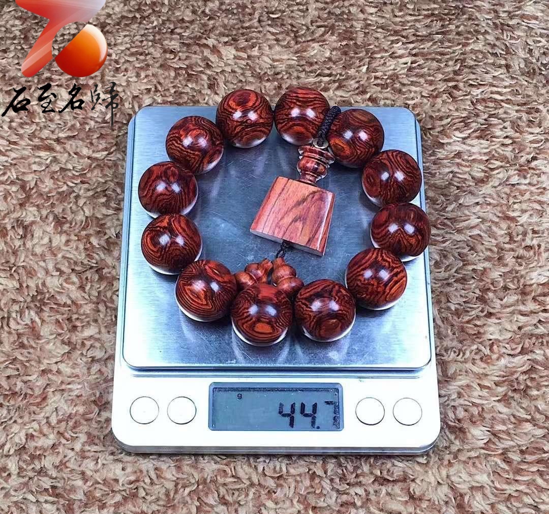 極品海南黃花梨老料 芝麻點+瘤疤花20mm手珠 重量53.7克