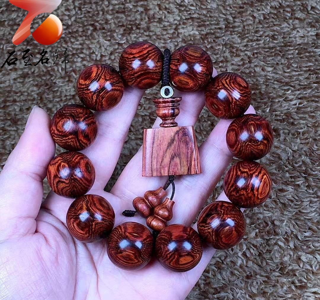 海南黃花梨野生料 虎皮天眼20mm手珠