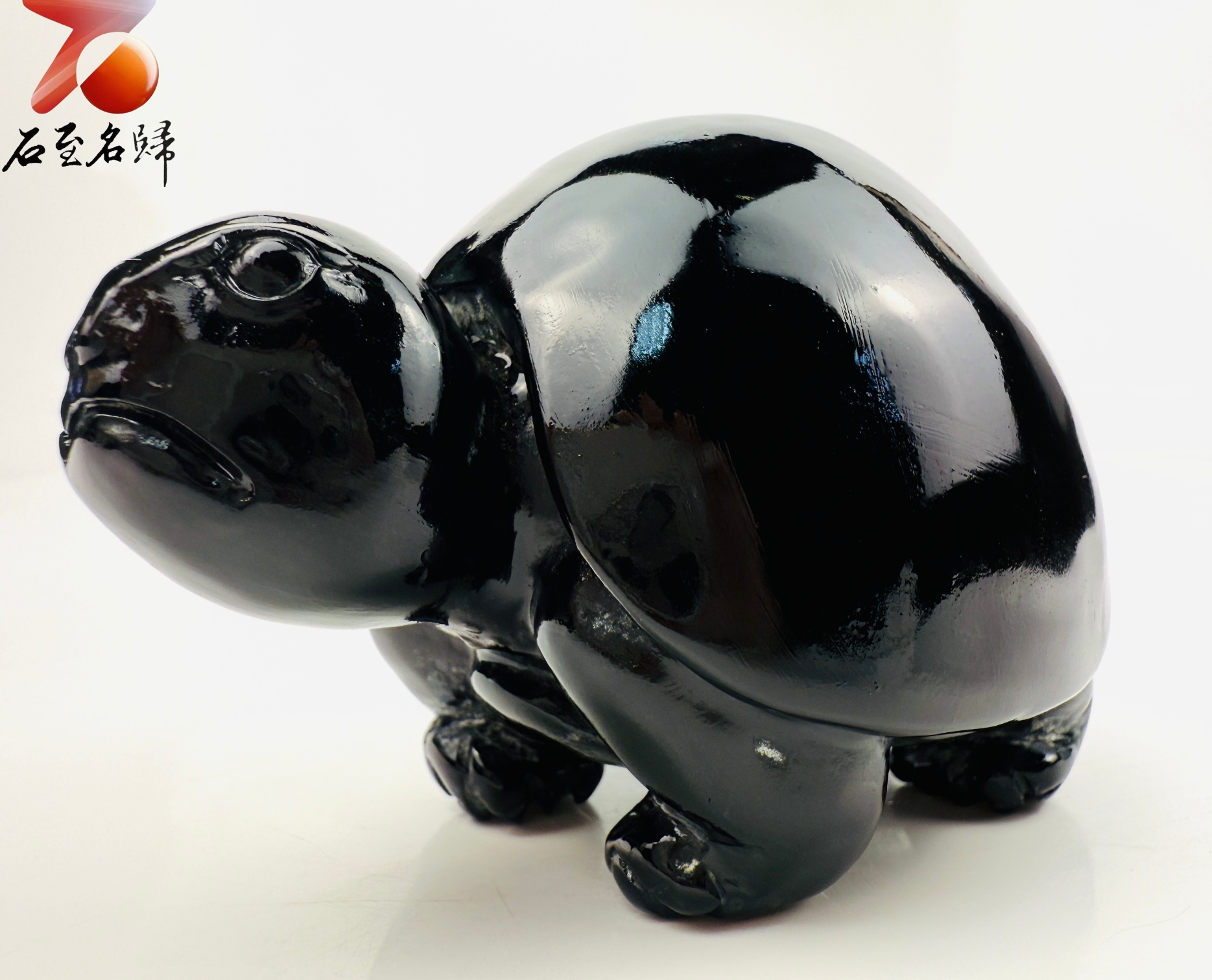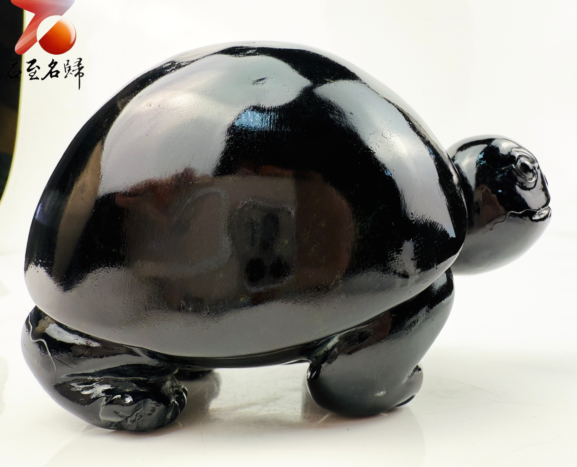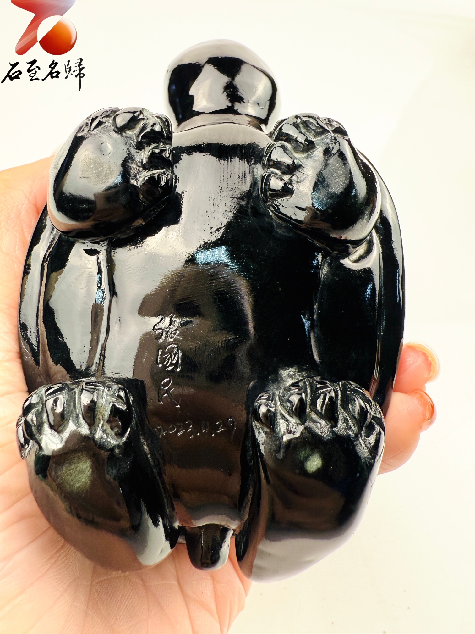 丹東石純手工雕烏龜 張國民雕刻家作品【墨墨守財龜】