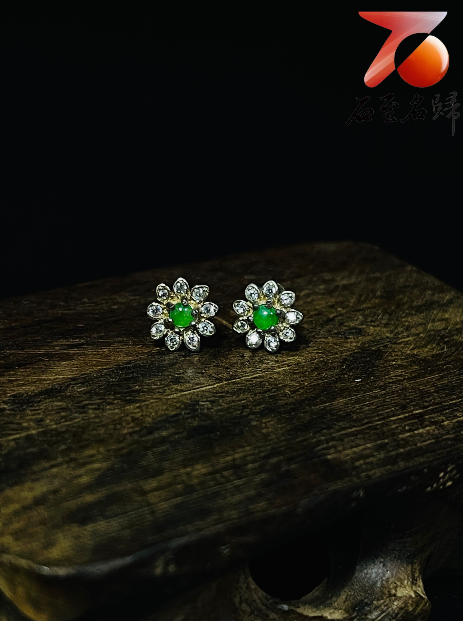 冰種翡翠A貨+925銀【波斯菊耳環】附玉石鑑定書