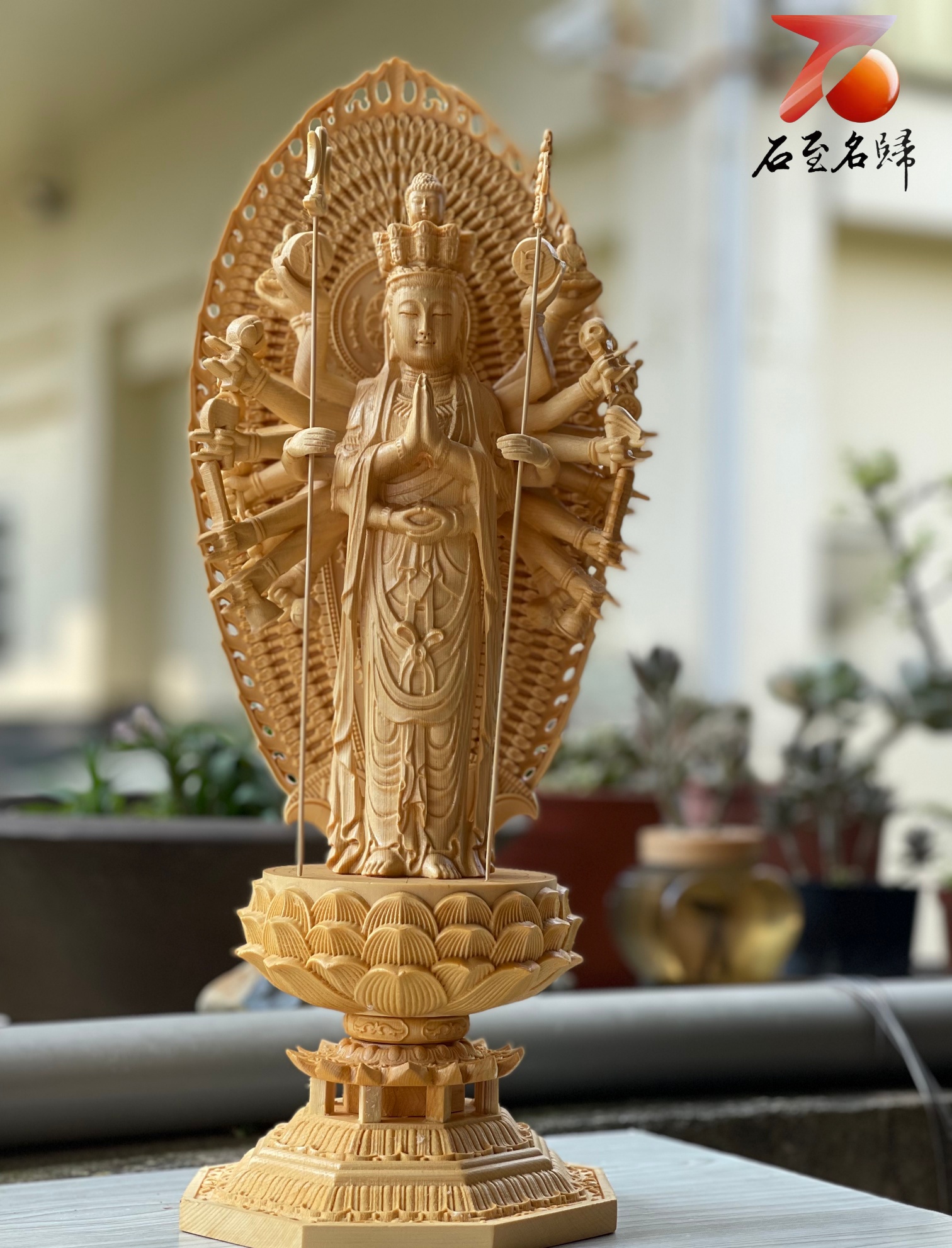 加拿大檜木精雕作品【千手觀音】高43公分(屏風可拆,高30公分)