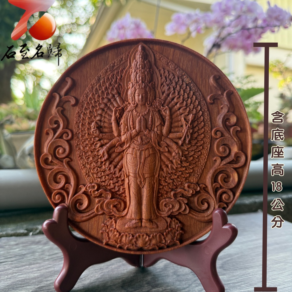 加拿大檜木精雕作品【千手觀音】高43公分(屏風可拆,高30公分)