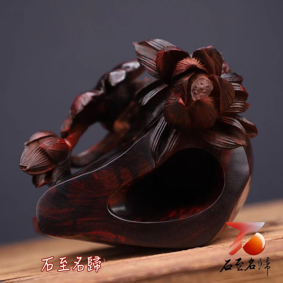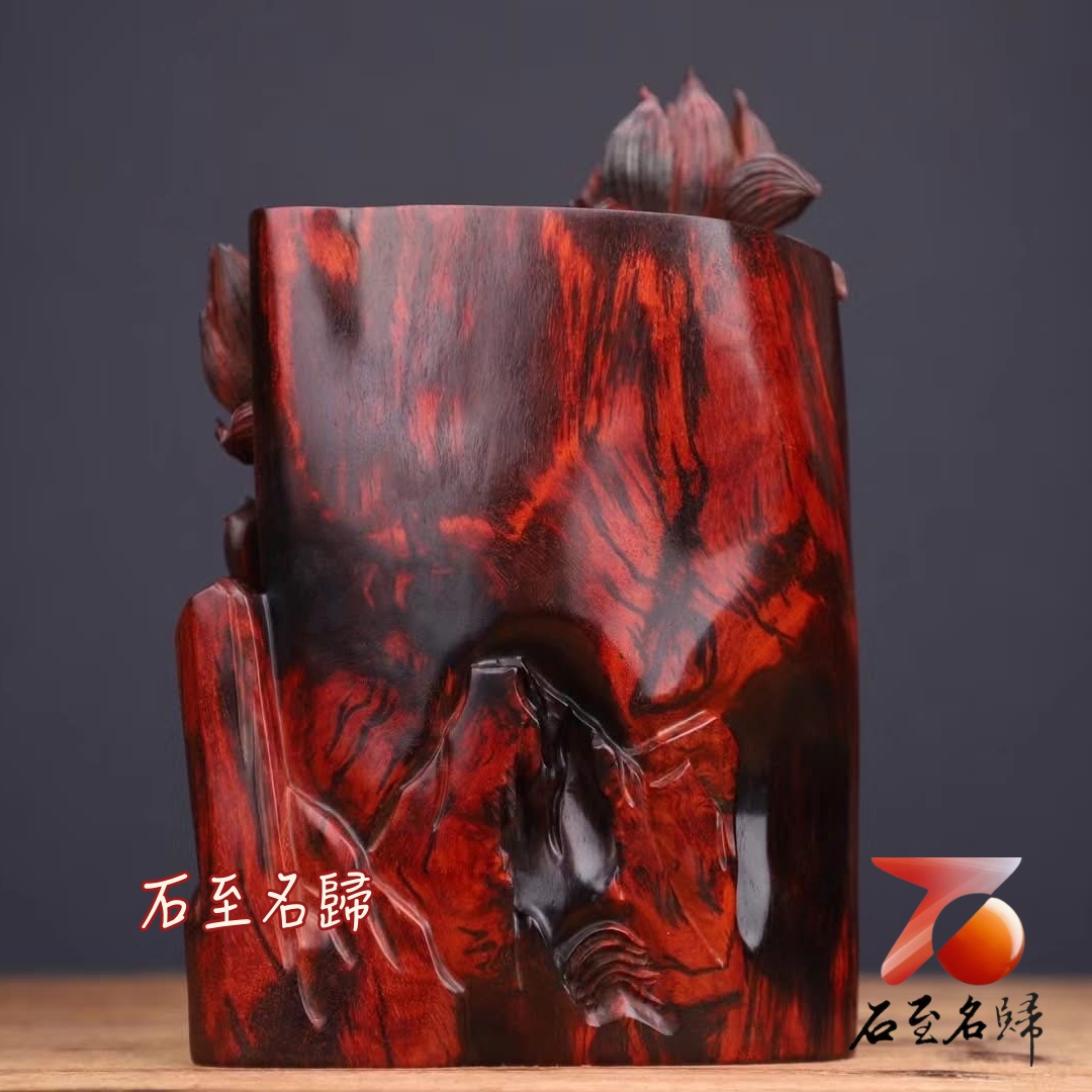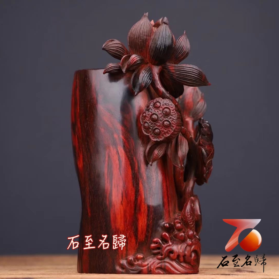 印度小葉紫檀精工作品【蓮年有餘筆筒】