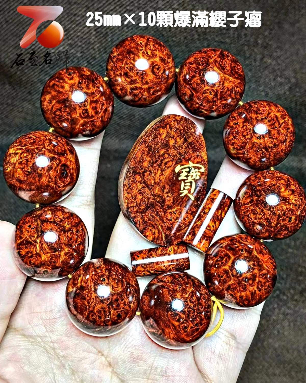 印度小葉紫檀纓子瘤疤 鎮店之【寶】 25mm×10顆爆滿纓子瘤