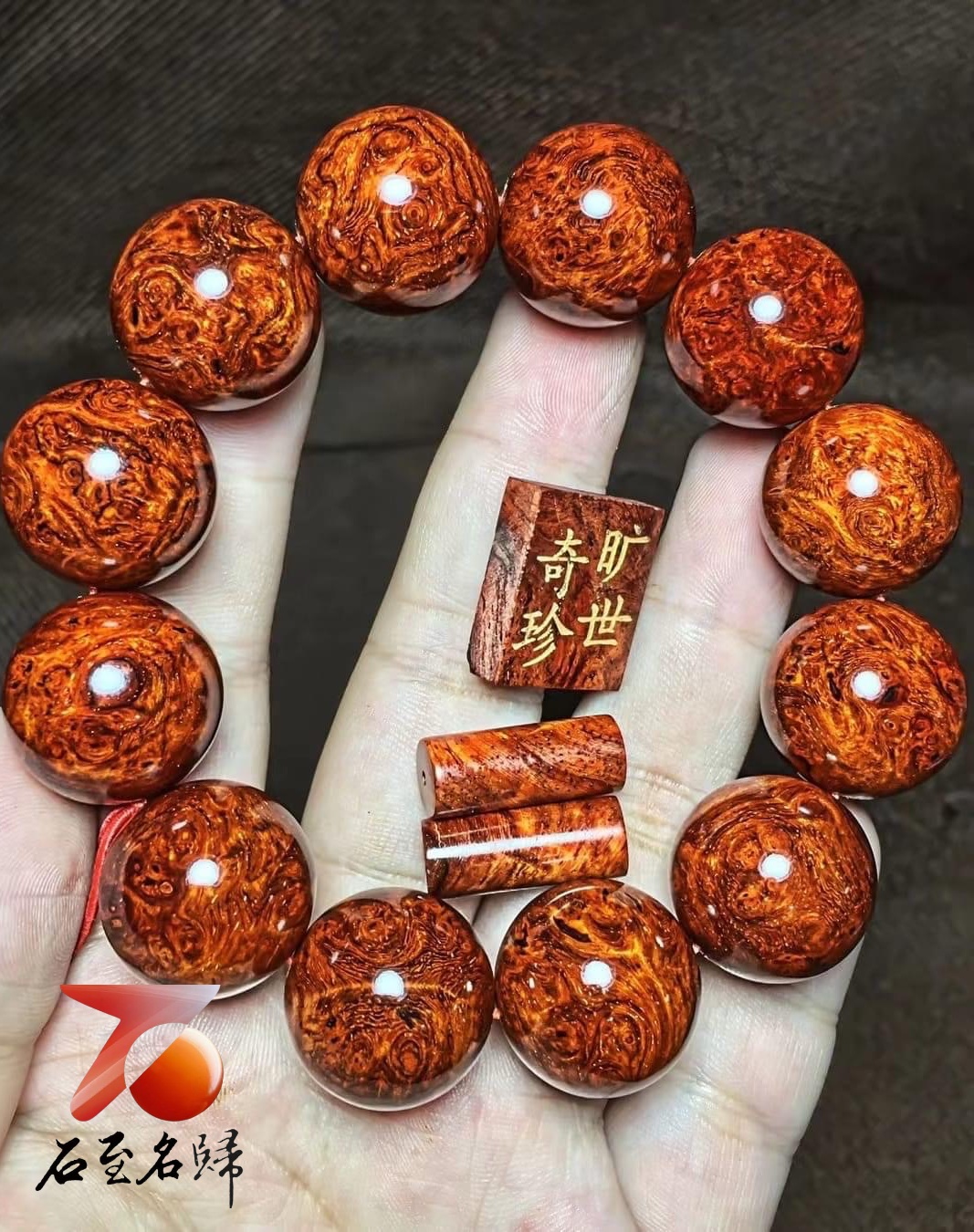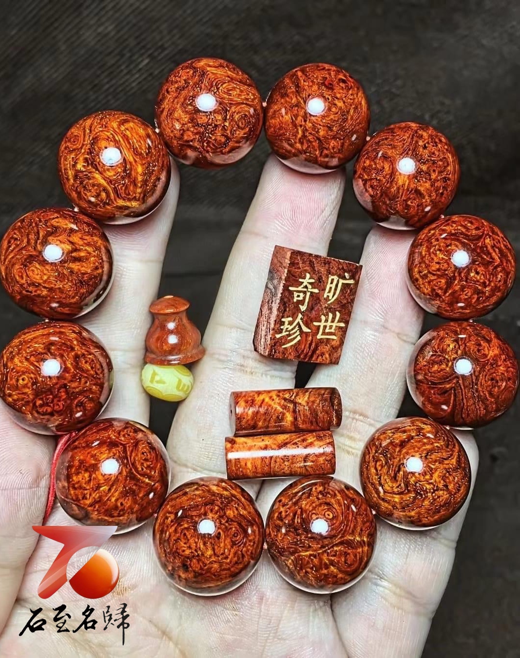 印度小葉紫檀 老料葡萄纓子瘤疤 頂級泥料螺旋星20mm×12顆【曠世奇珍】