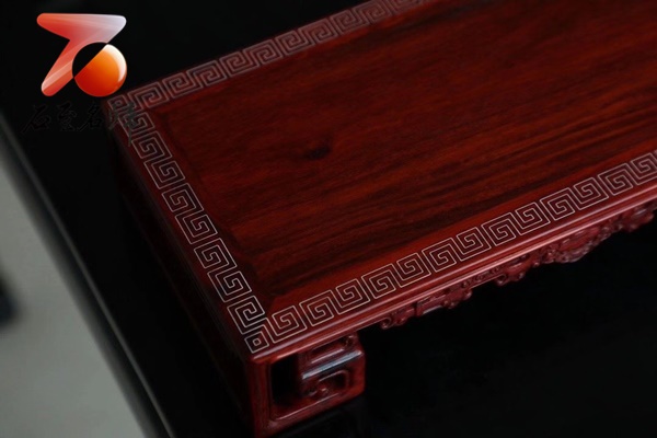 面獨板,腳體邊框榫卯結構,邊框以銀絲鑲嵌回紋,
