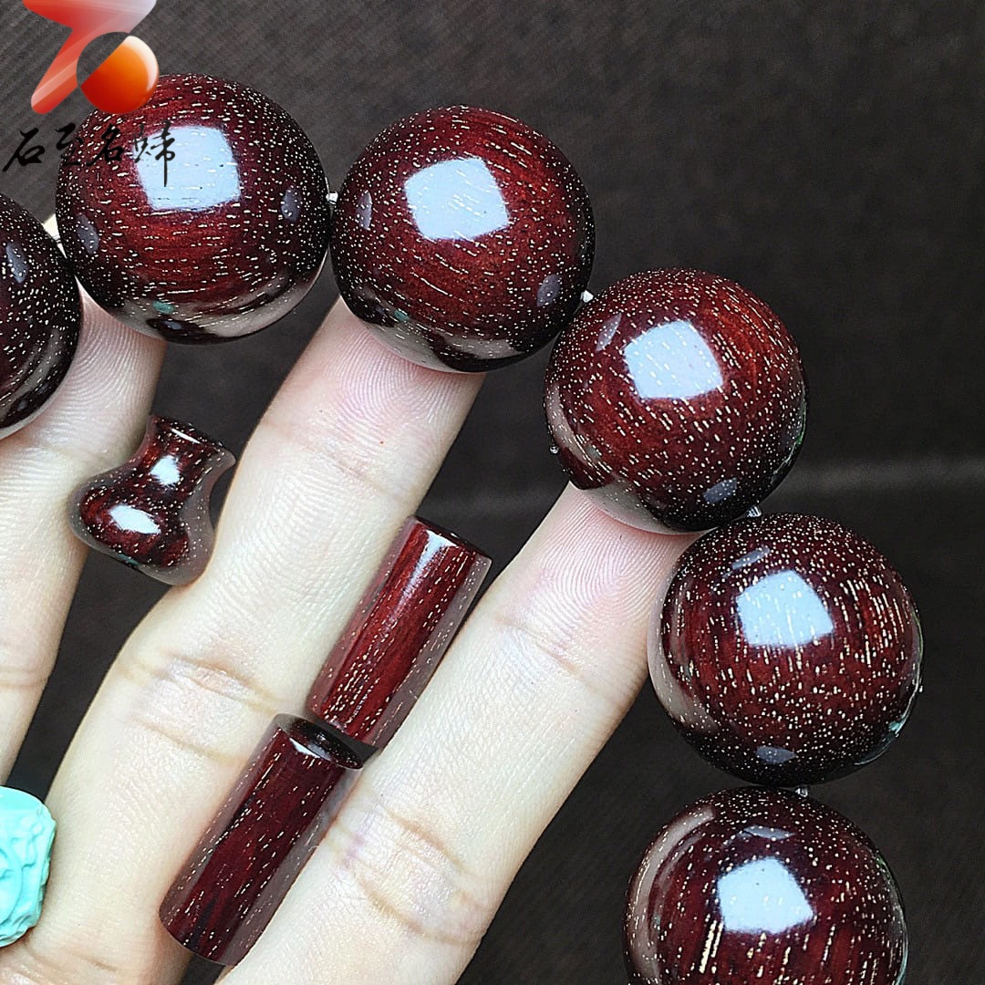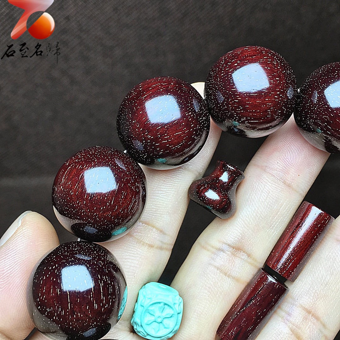 印度小葉紫檀老料 頂級爆滿金星泥料酒紅色【酒紅無事牌】20mm手珠