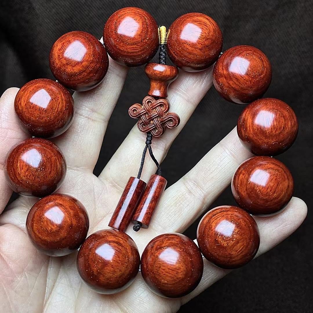 印度小葉紫檀老料 頂級爆滿金星泥料酒紅色【酒紅無事牌】20mm手珠