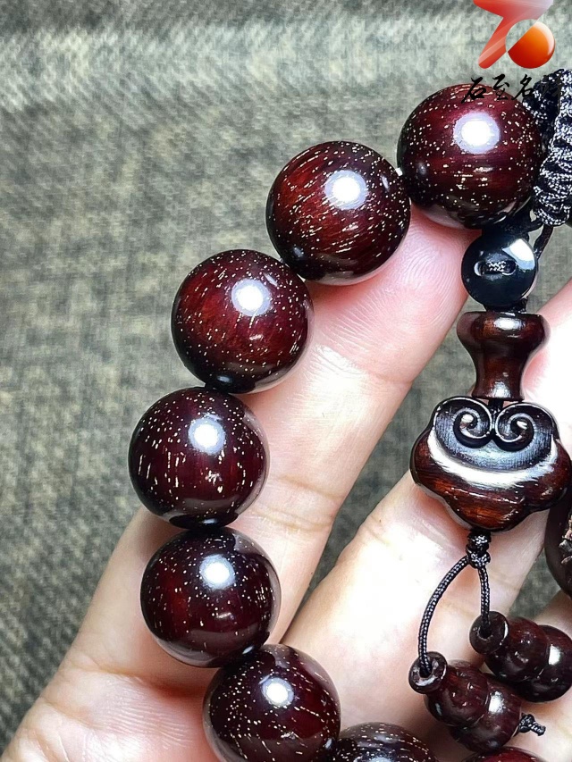 正宗印度小葉紫檀老料18mm×13顆 泥料+龍鱗紋+金星
