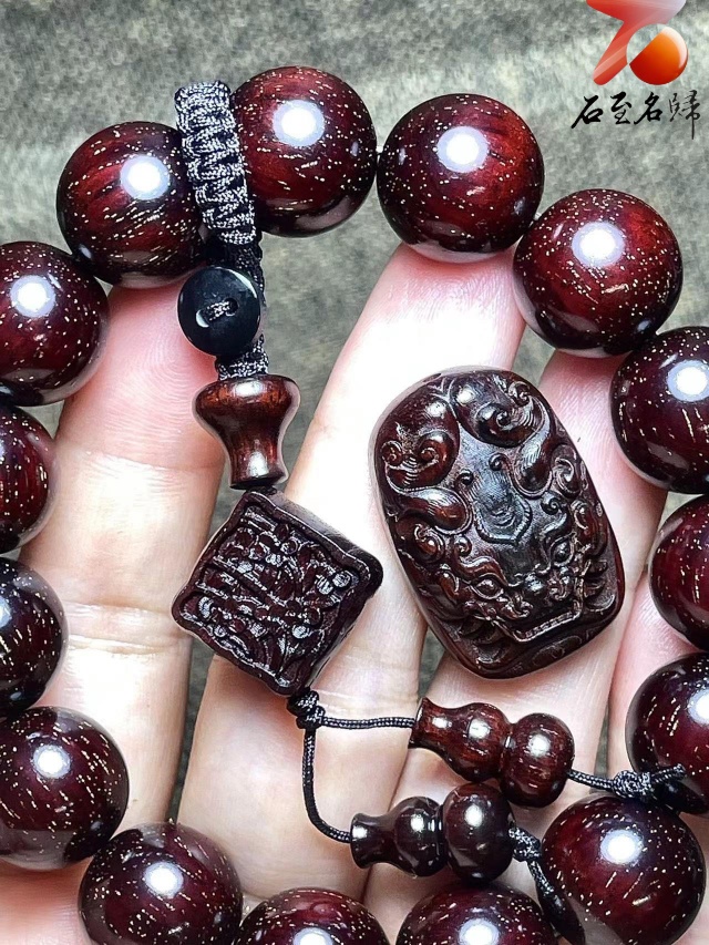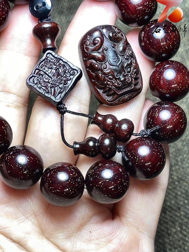 印度小葉紫檀老料15mm滿金星精選【鎏金典藏,鎮守財運:貔貅】
