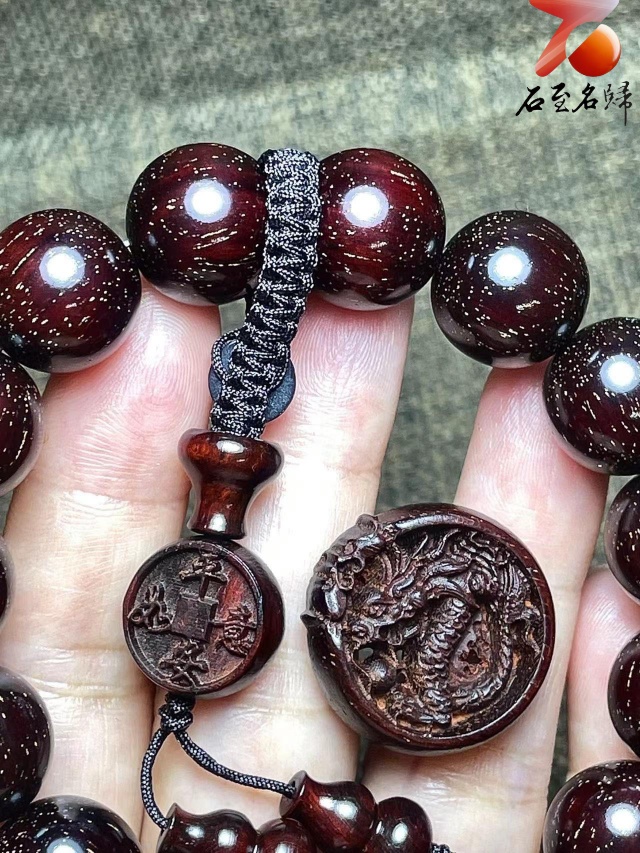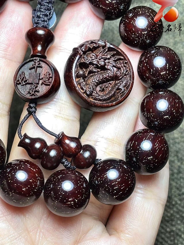 印度小葉紫檀老料15mm滿金星精選【龍:平安如意】
