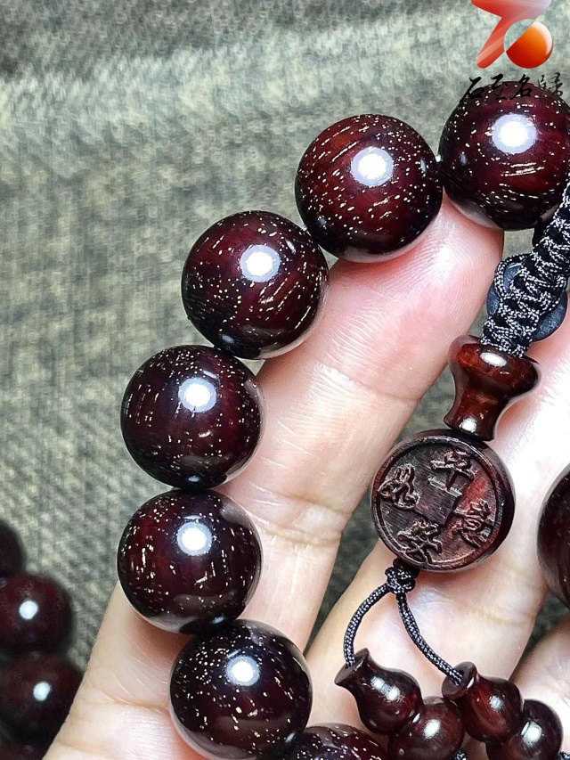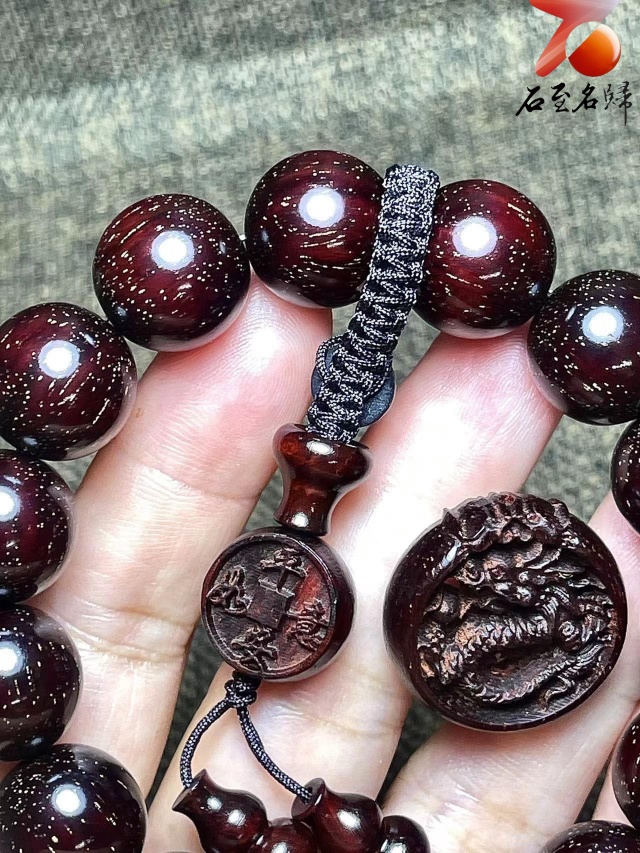 帝王之木印度小葉紫檀老料爆滿金星 高油密 玻璃底【手牌/手串】