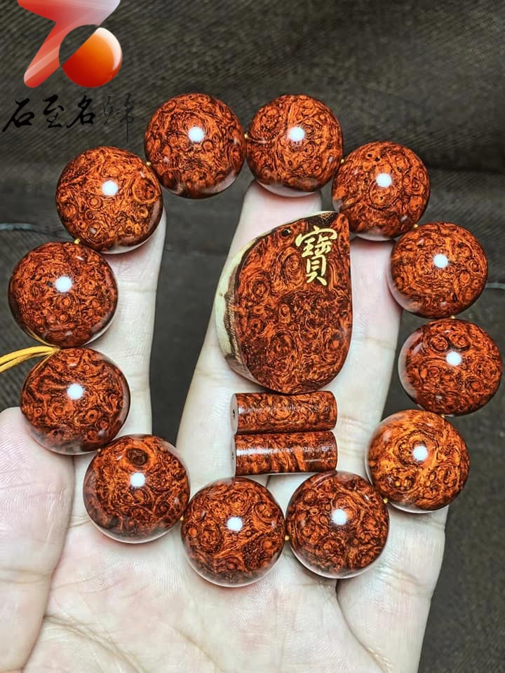印度小葉紫檀手珠【珍奇】 老料瘤疤 18mm×13顆