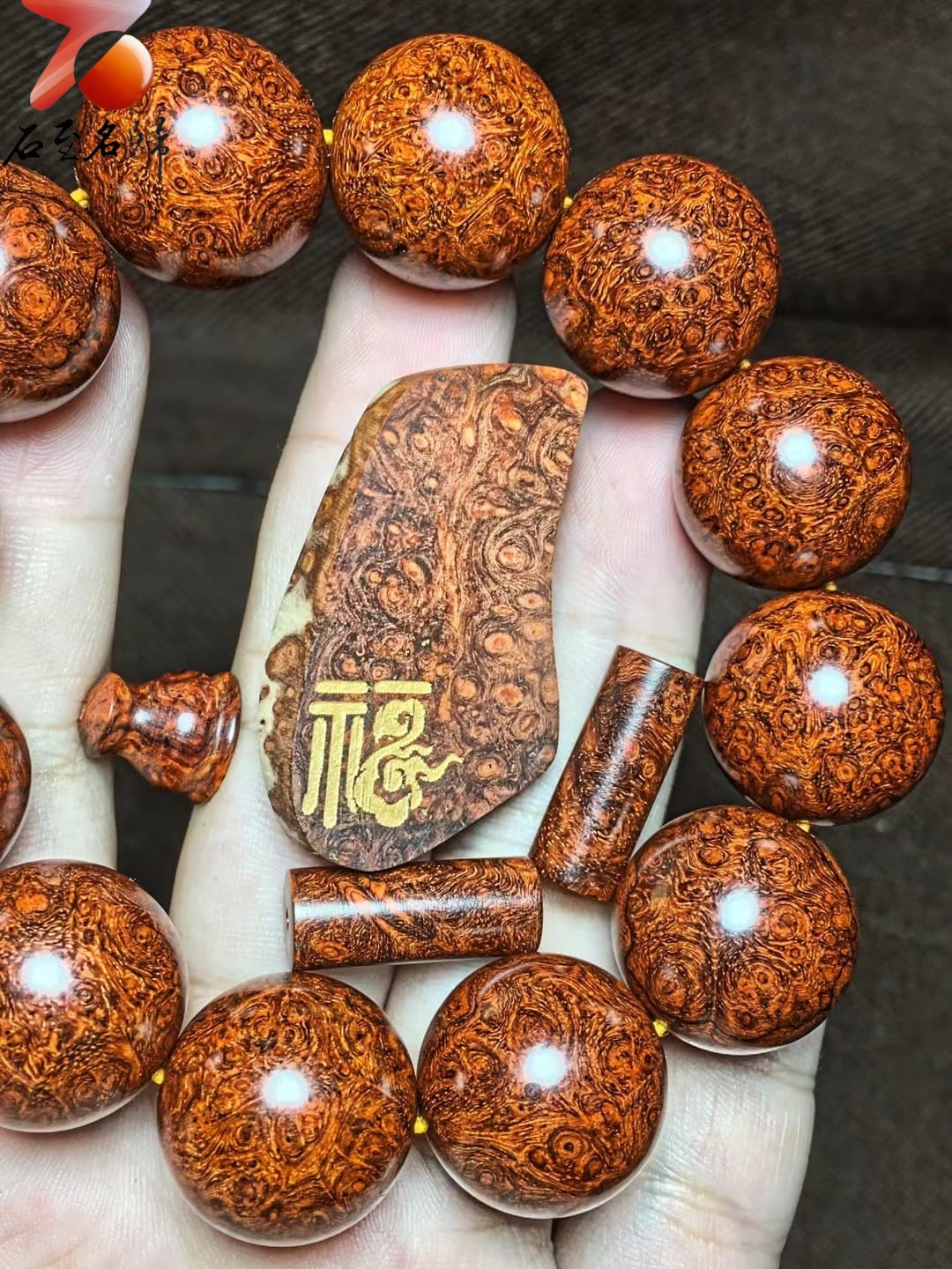 印度小葉紫檀 老料葡萄纓子瘤疤 頂級泥料螺旋星20mm×12顆【曠世奇珍】