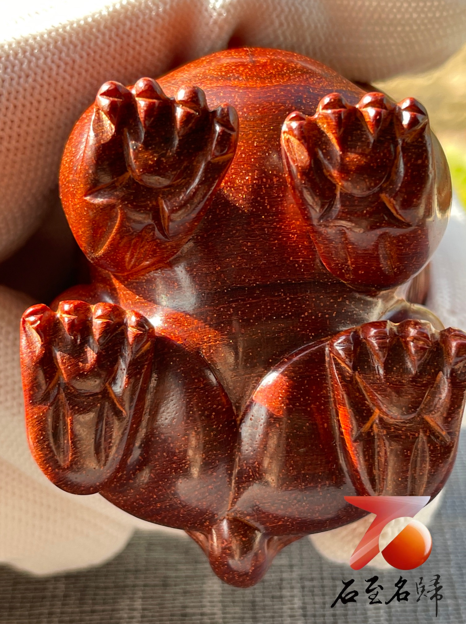 湘工手作 印度小葉紫檀高油密二膘料 大號手把件 【招財金蟾】