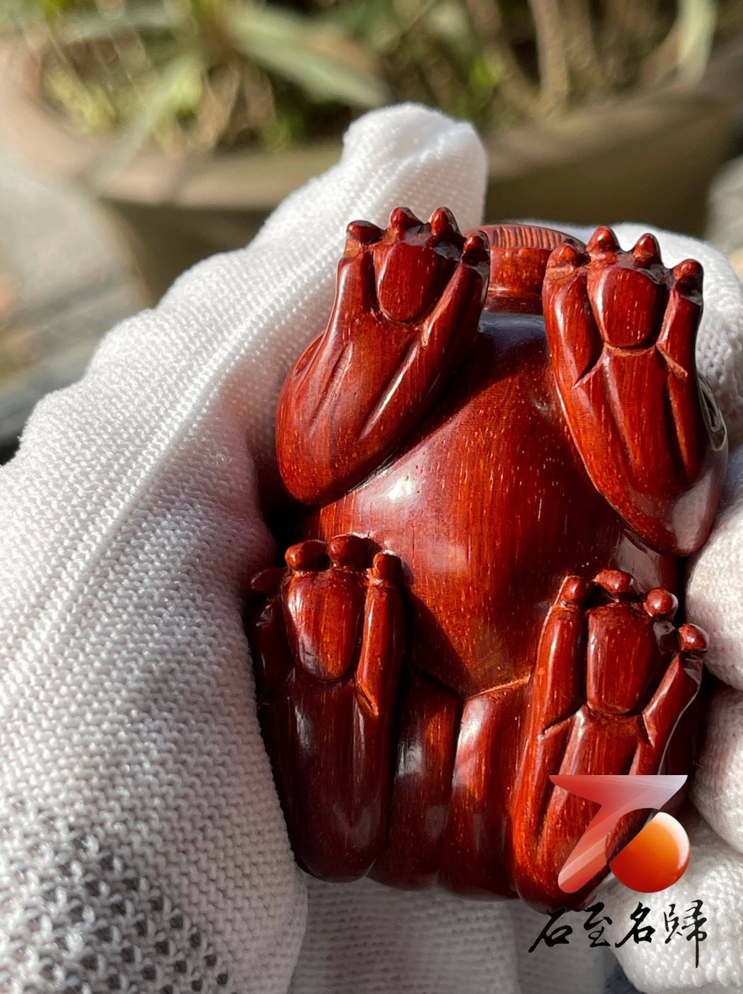 湘工手作 印度小葉紫檀高油密二膘料 大號手把件 【招財金蟾】