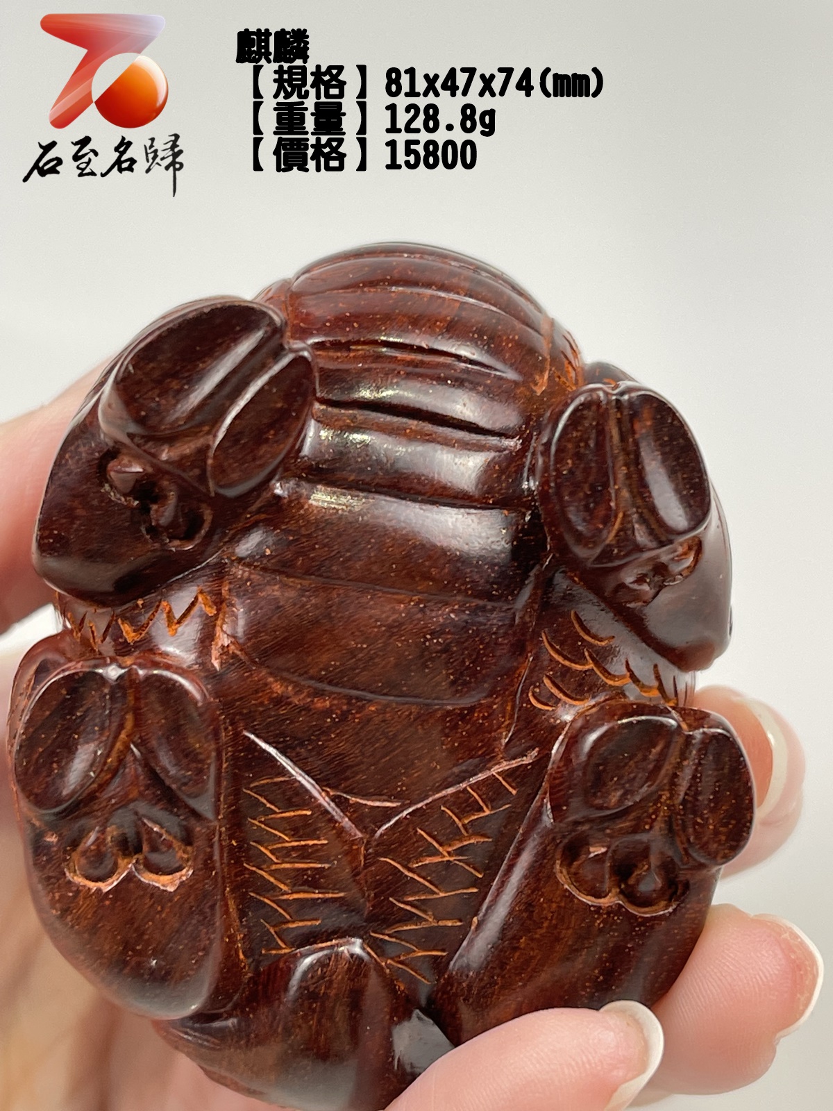 印度小葉紫檀高油密材質 湘工工藝精品手把件【麒麟】