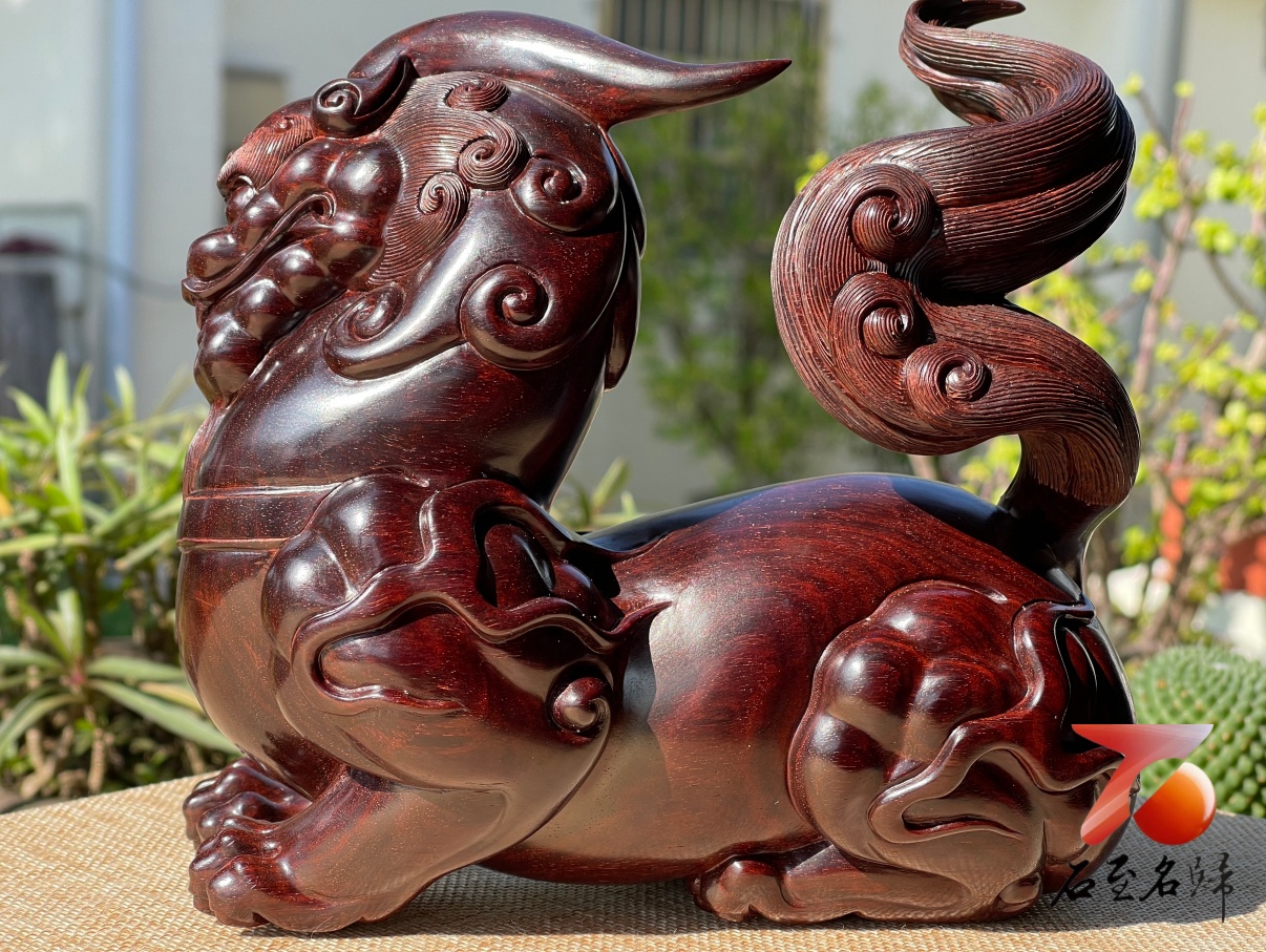 印度小葉紫檀整料手工雕刻【麒麟獻瑞】