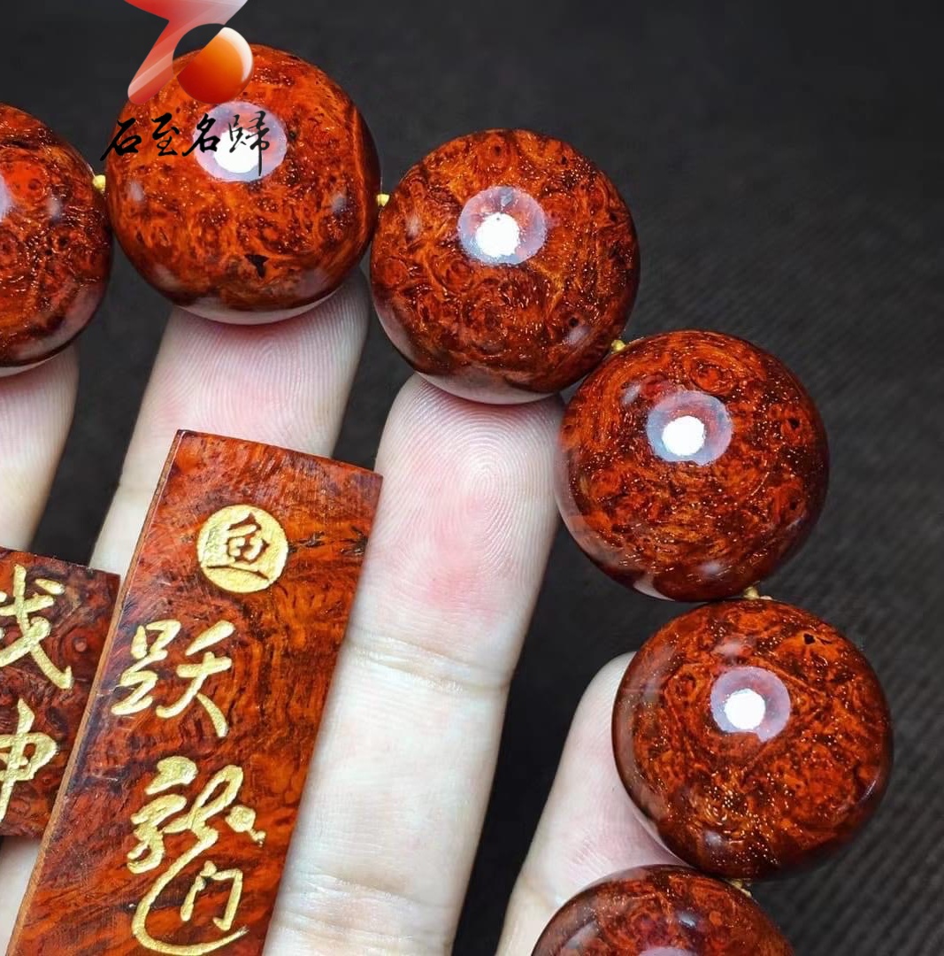 印度小葉紫檀老料 炫彩爆滿點狀葡萄纓子瘤疤20mm手珠【鳳舞九天】