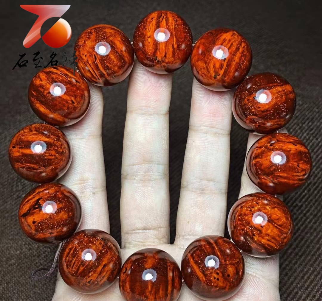 印度小葉紫檀老料 泥料雞血紅爆滿水波20mm手珠