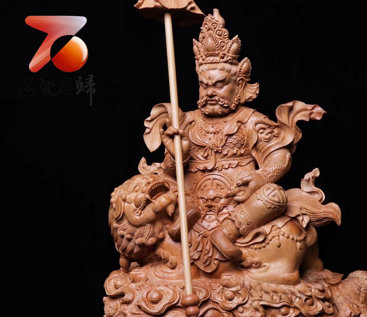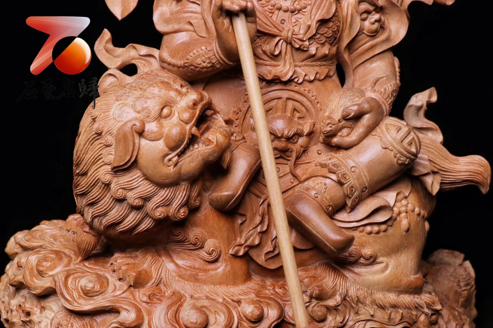 財寶天王坐騎雪獅瑞麟,獅口大張,