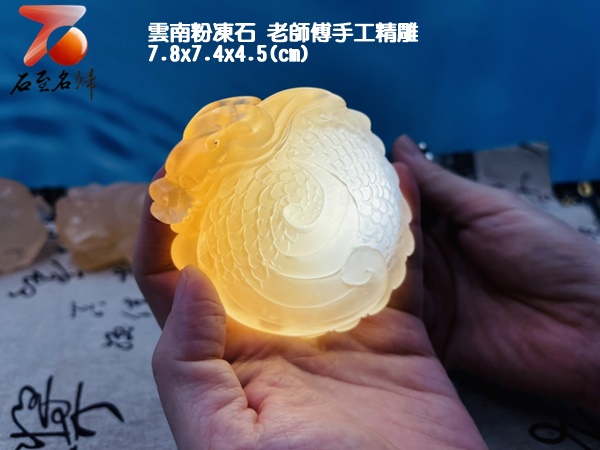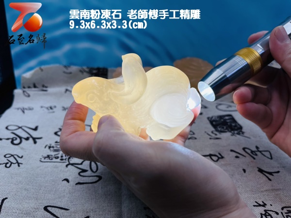 台灣現貨 實物錄影 雲南粉凍石 老師傅手工精雕 高透光手把件
