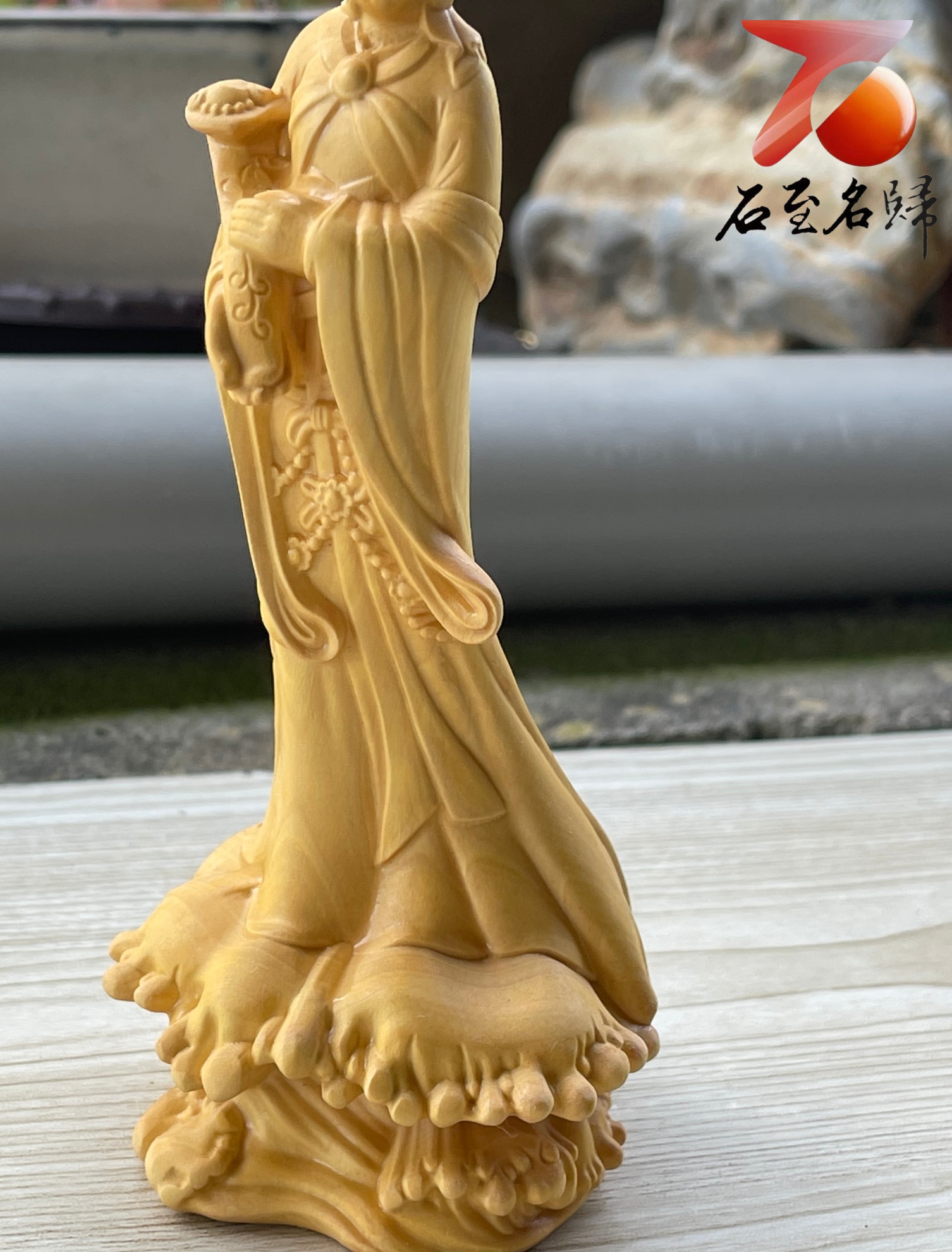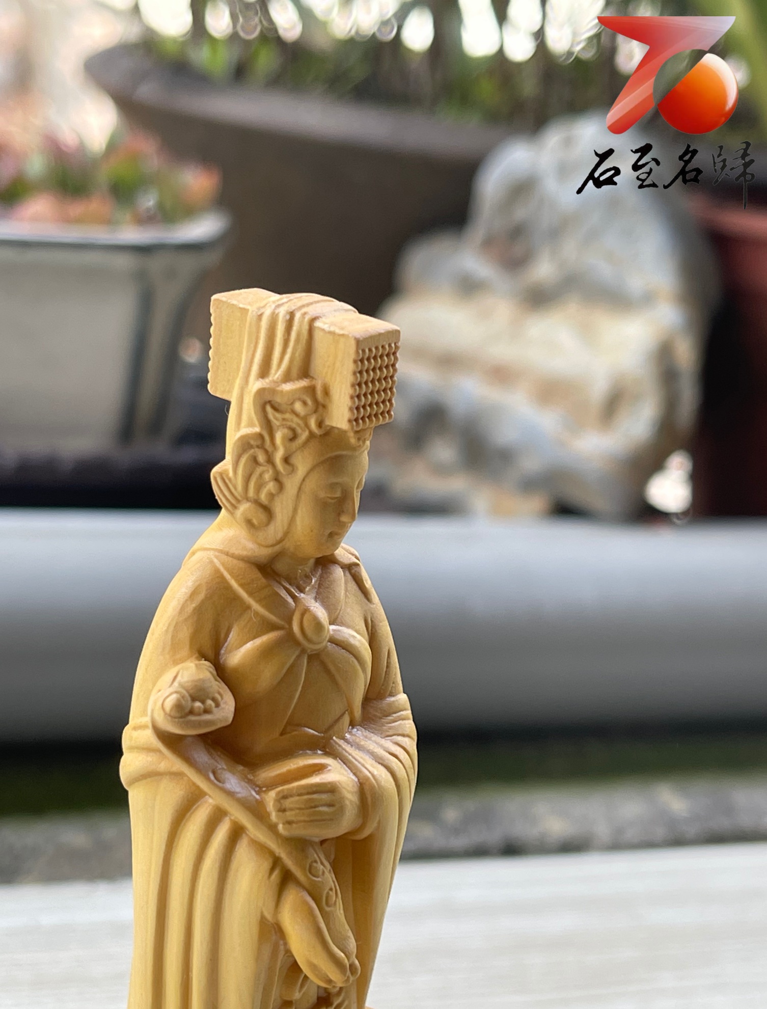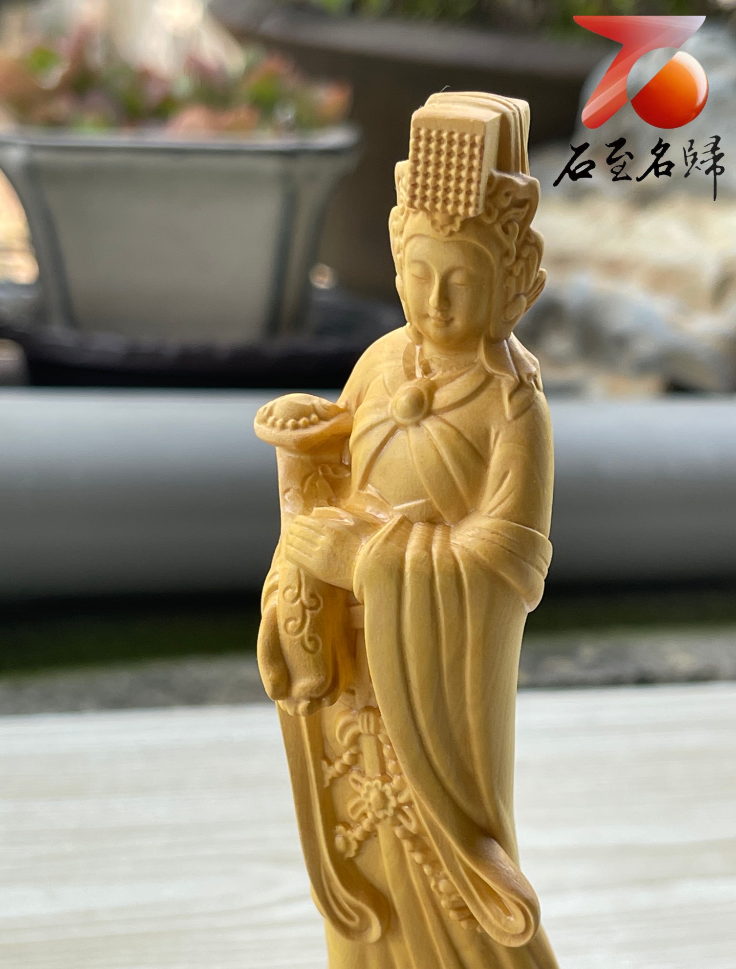 黃楊木【千手觀音】附透明保護殼+精美收藏禮盒 車內保平安擺件 高度約12公分