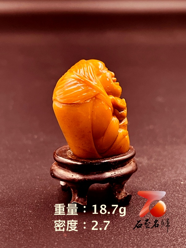 壽山田黃石收藏雕件【羅漢】 附福州壽山石鑑定中心鑑定證書 田黃重量13.1公克