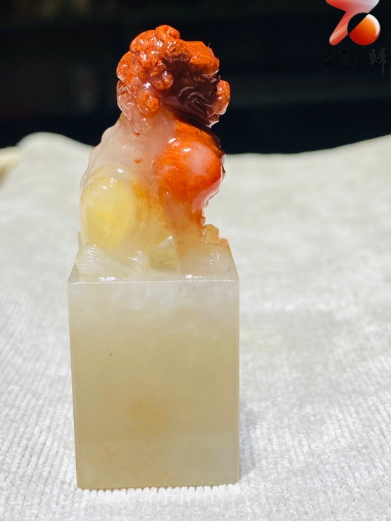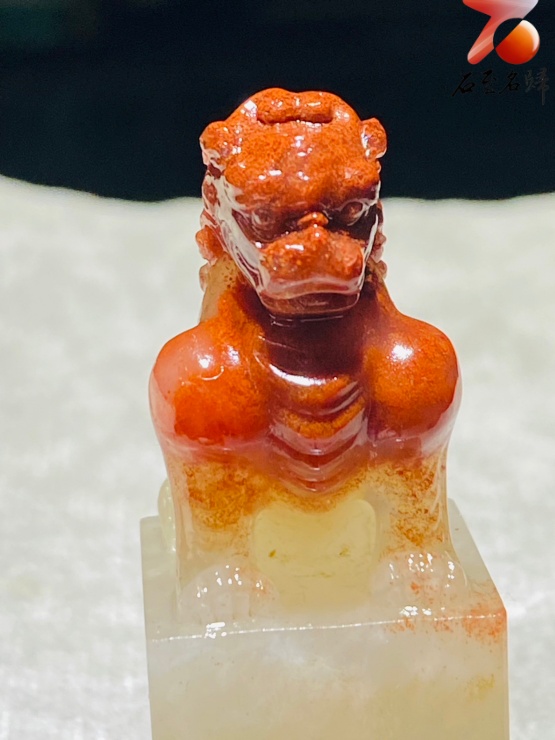 壽山石高油料 帶金沙【赤龍盤璽】印面3.5、高8.3公分