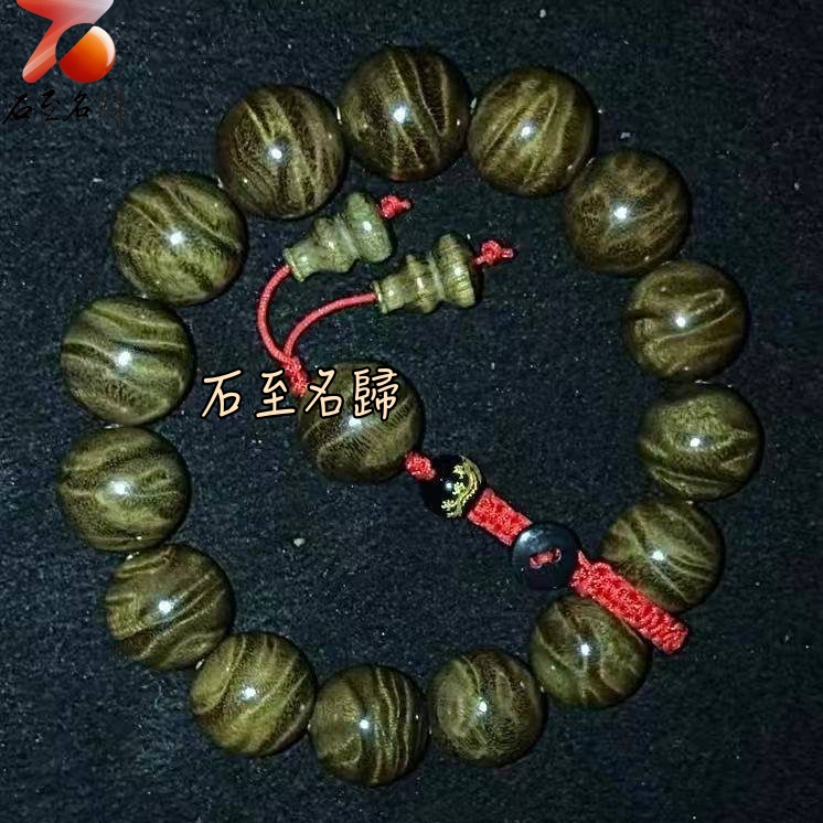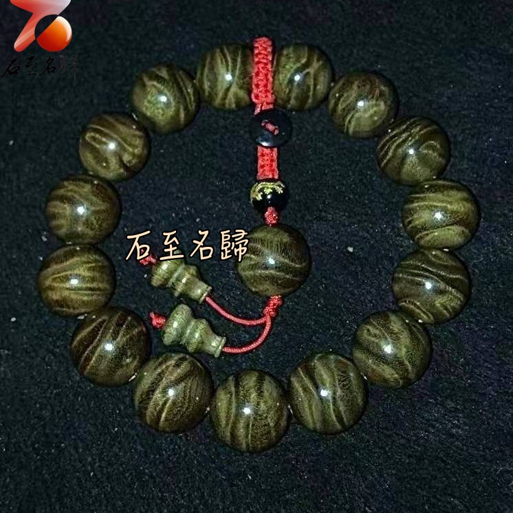 天然 一物一拍 金絲楠木小葉楨楠精品陰沉料(烏木料)龍膽+水波15mm手珠【龍御天下】