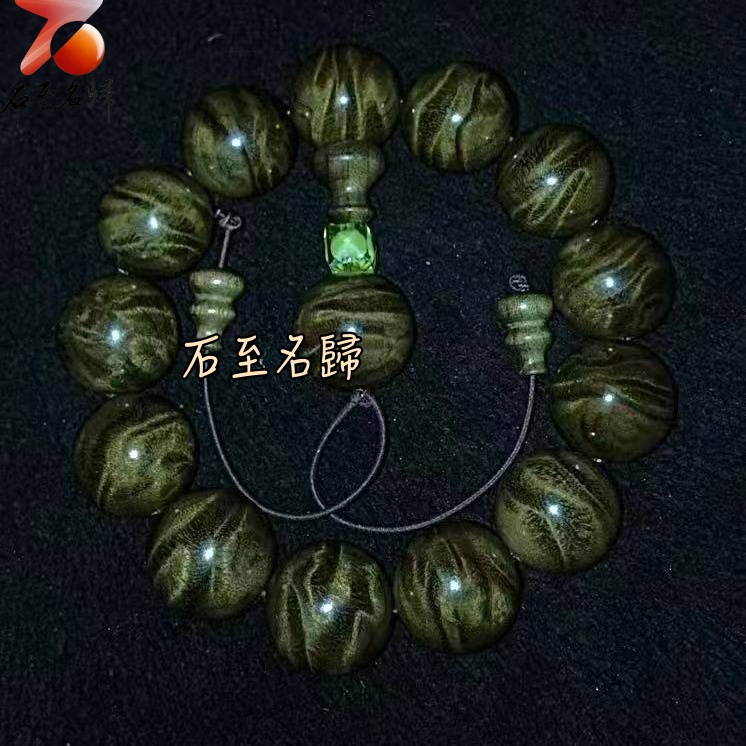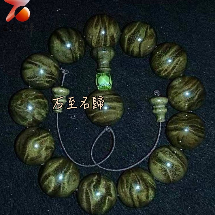 天然 一物一拍 金絲楠木小葉楨楠精品陰沉料(烏木料)龍膽+水波18mm手珠【翠心納財】