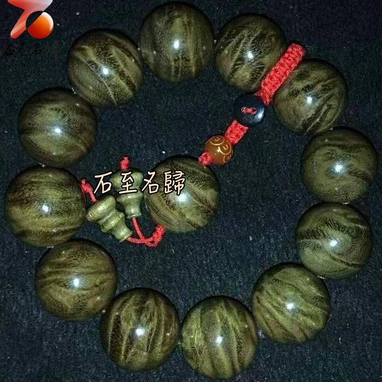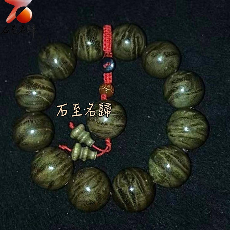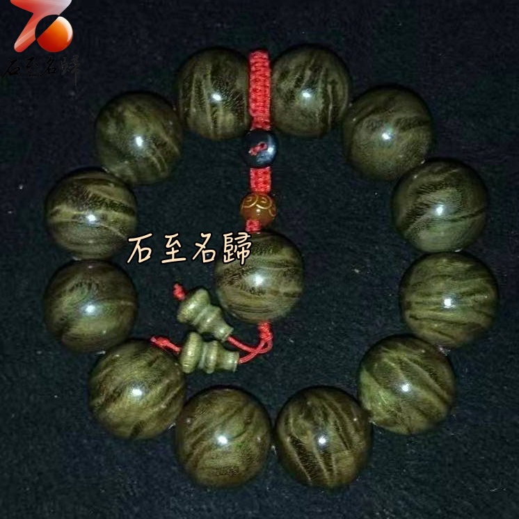 天然 一物一拍 金絲楠木小葉楨楠精品陰沉料(烏木料)龍膽+水波20mm手珠【聚財紅心】