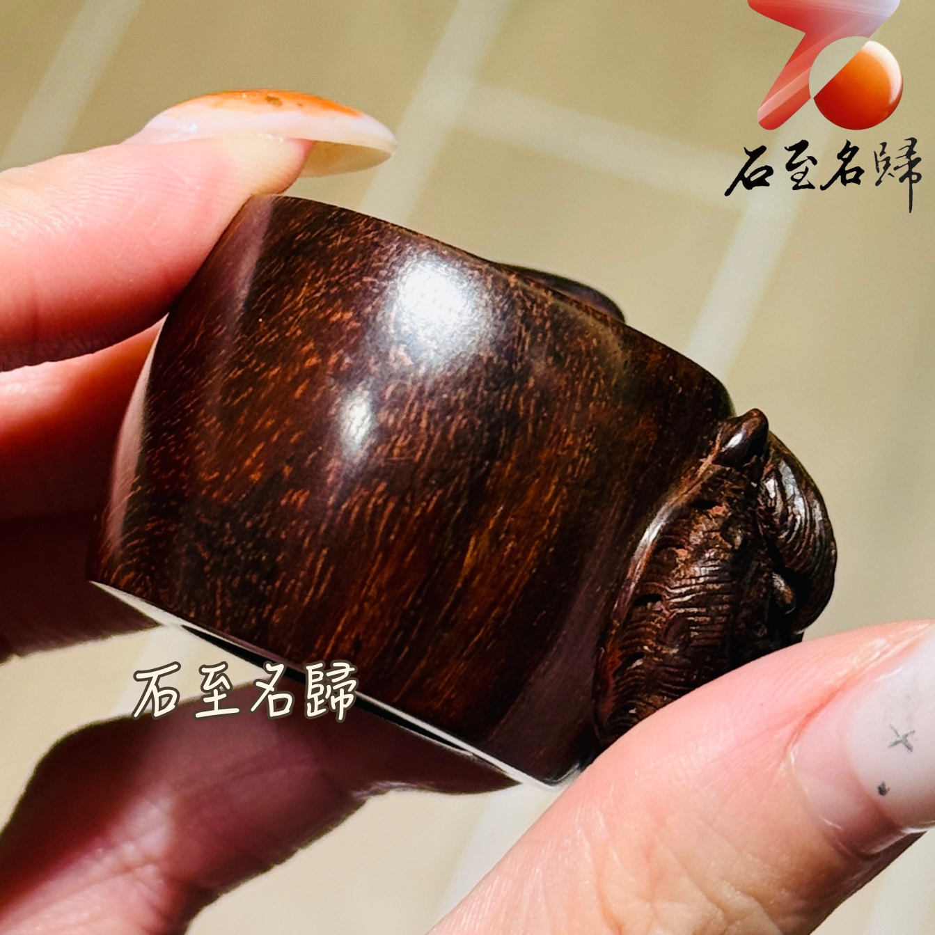 天然 印度小葉紫檀高油密滿金星樹心料 湘工手作【虎威鎮財扳指】