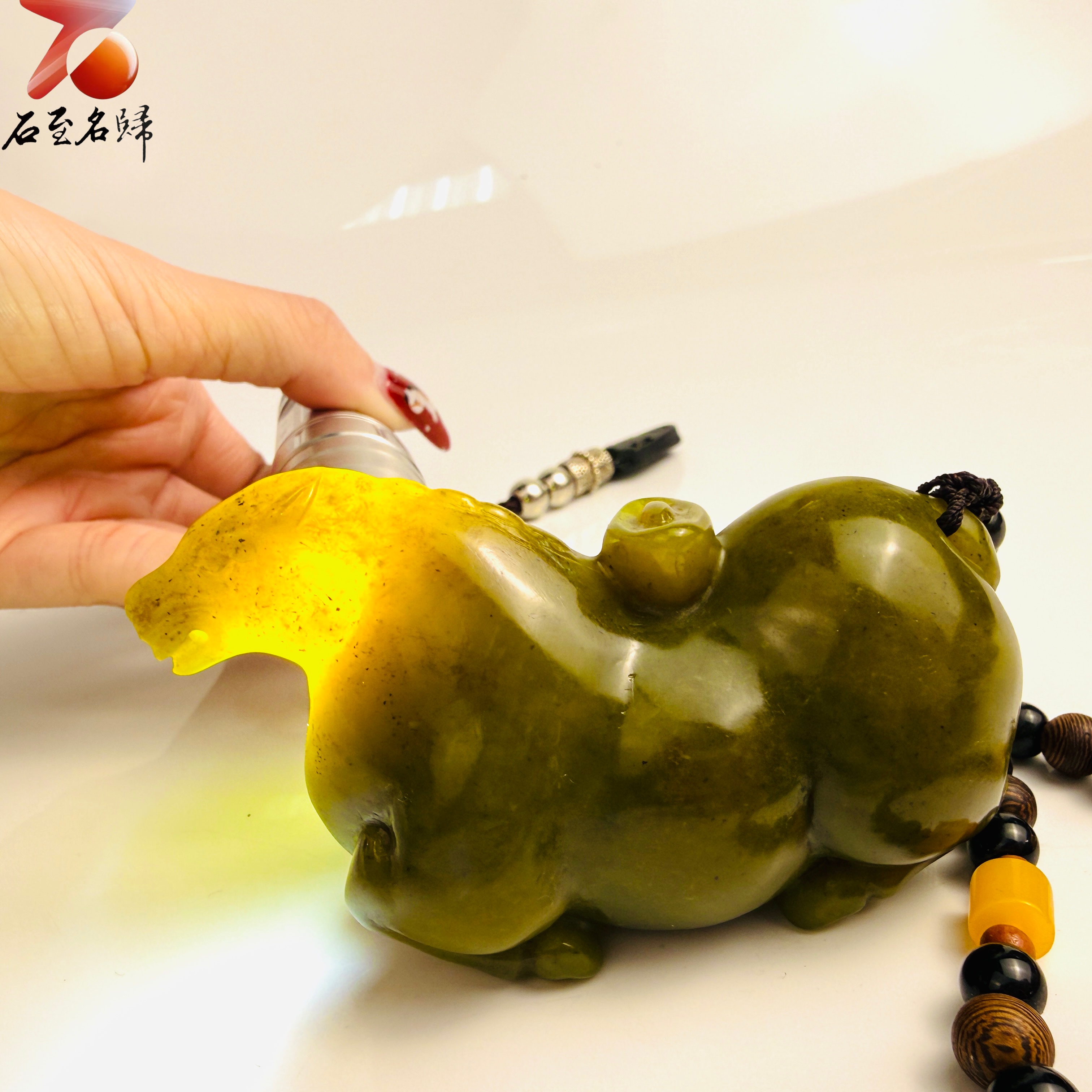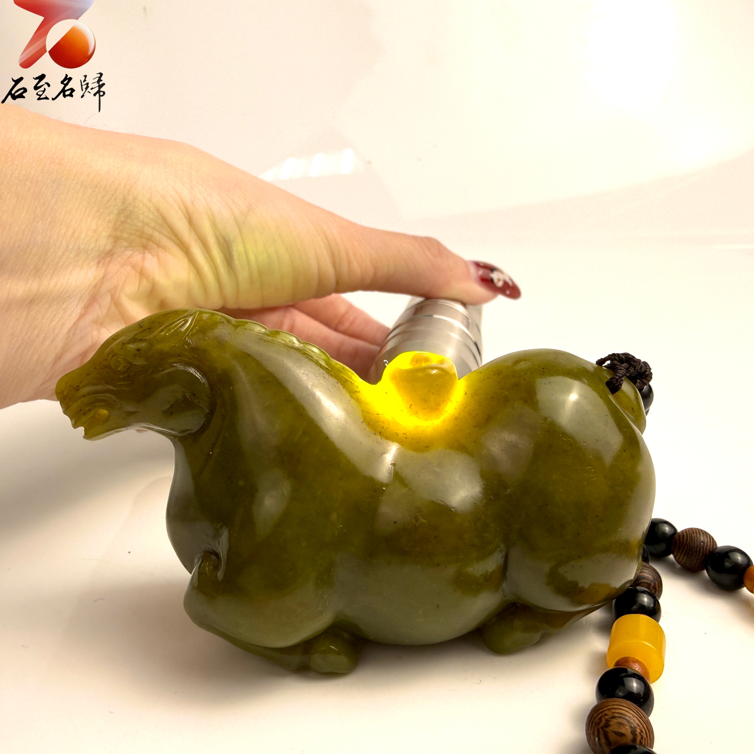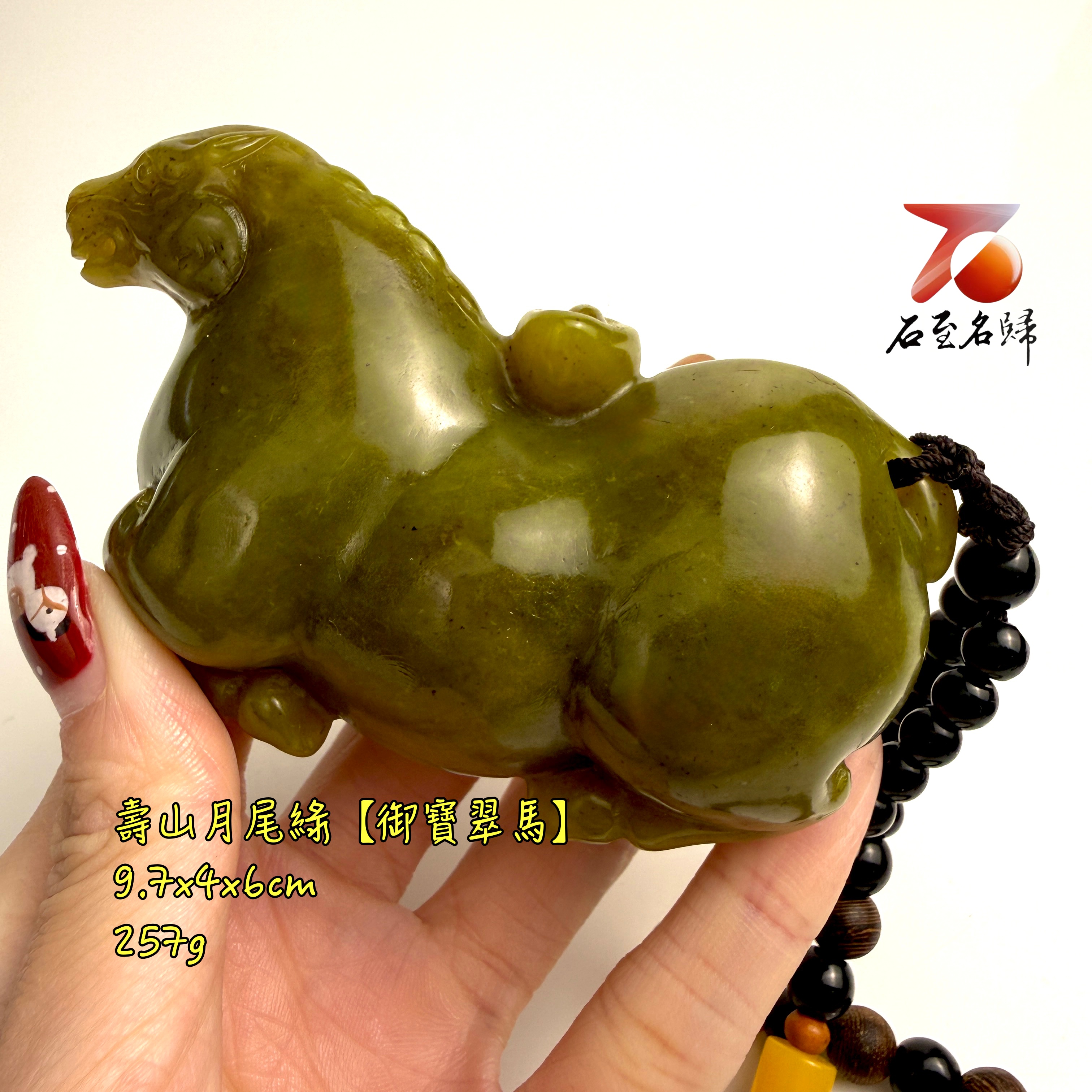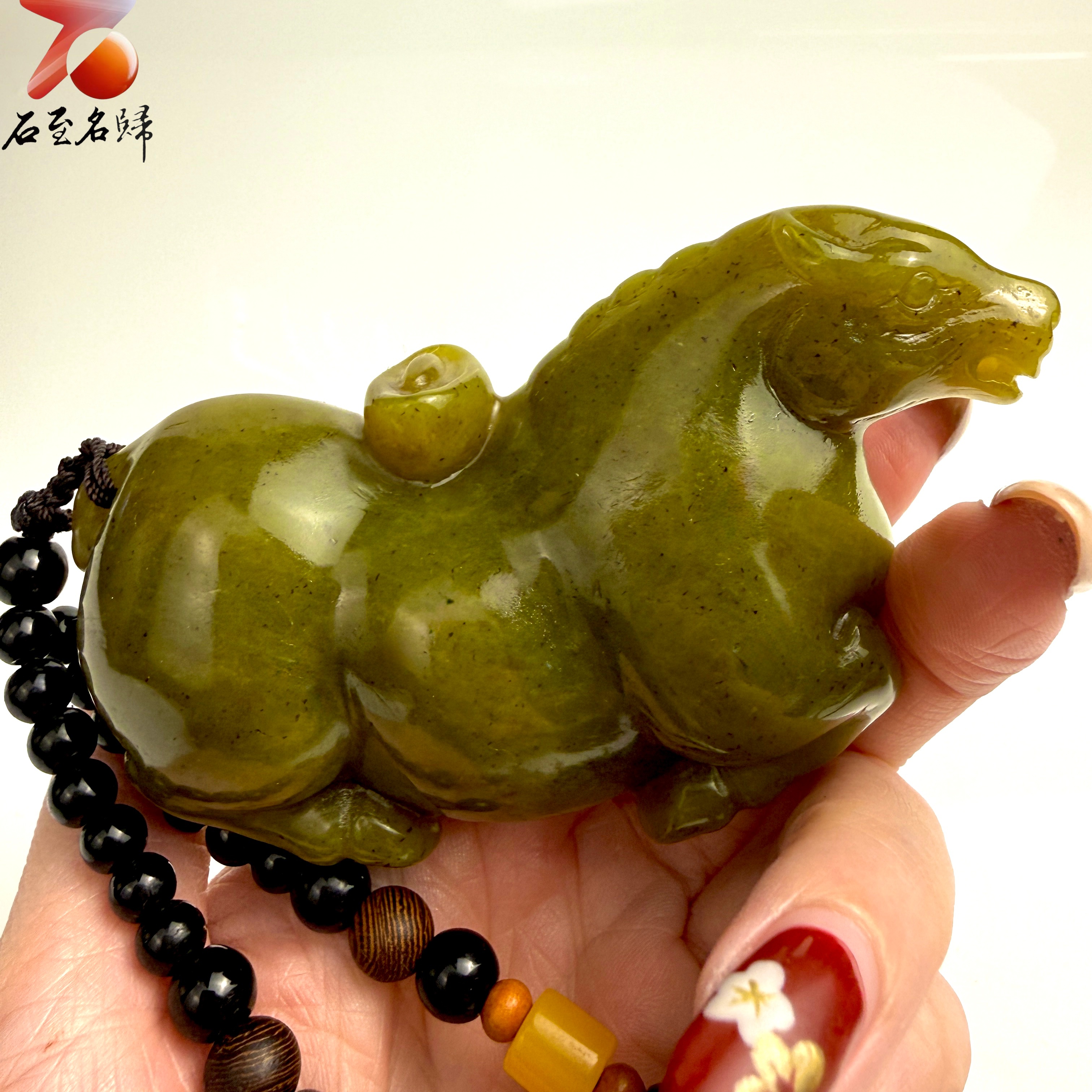 天然 壽山月尾綠透光原石x純手工精雕【御寶翠馬】馬年開運石雕