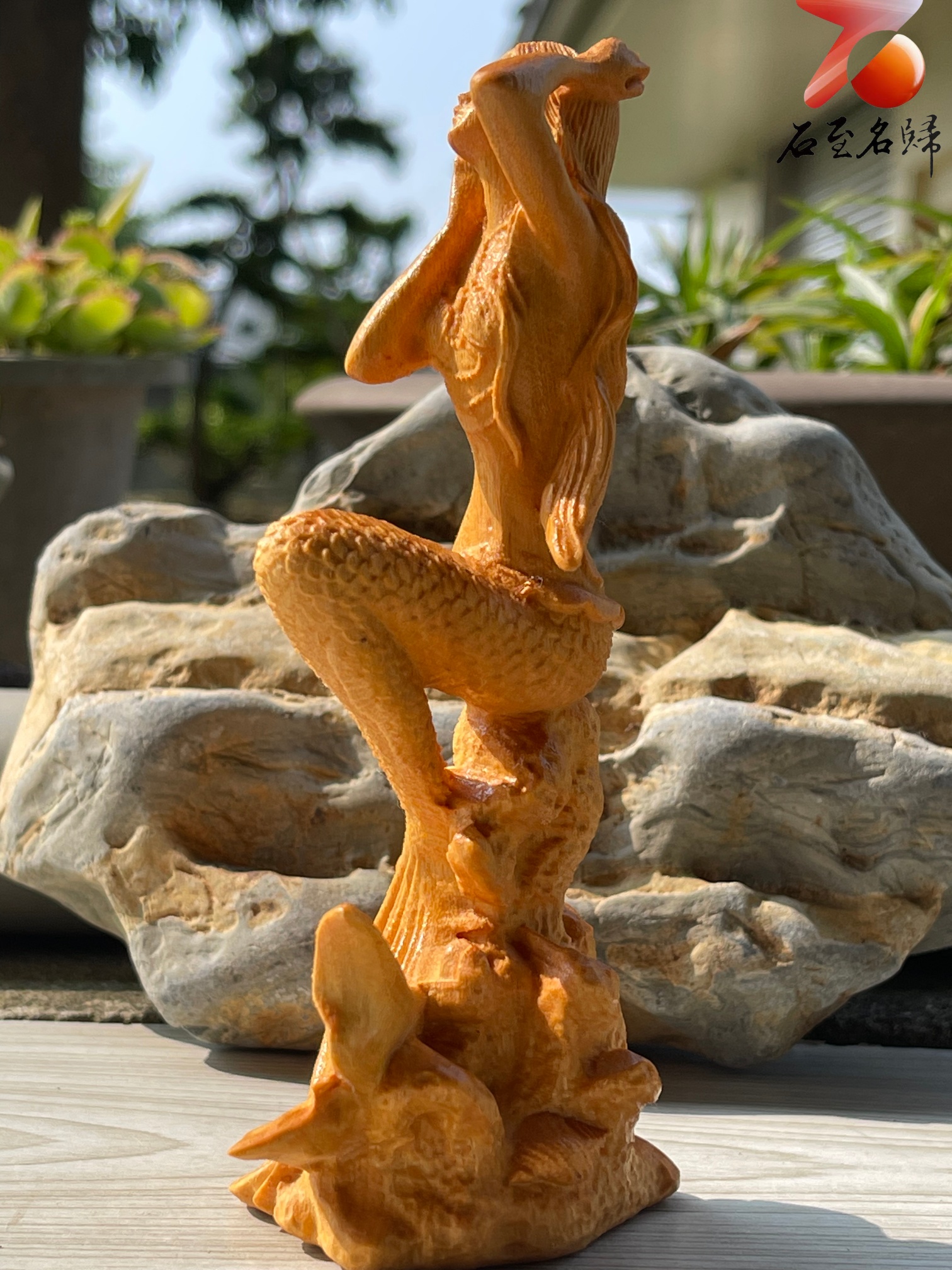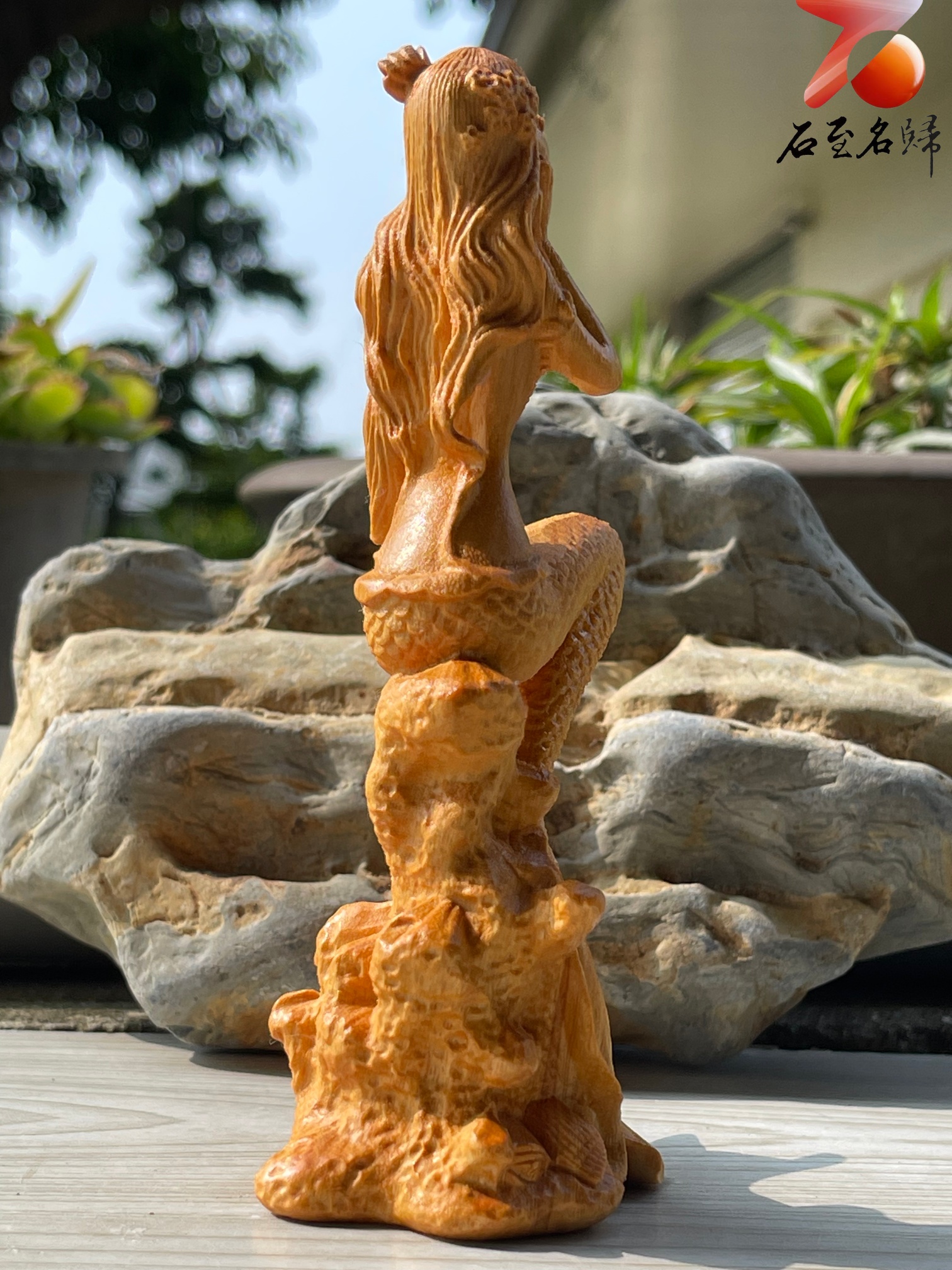 崖柏木原木雕件【小美人魚雕件】附收藏禮盒