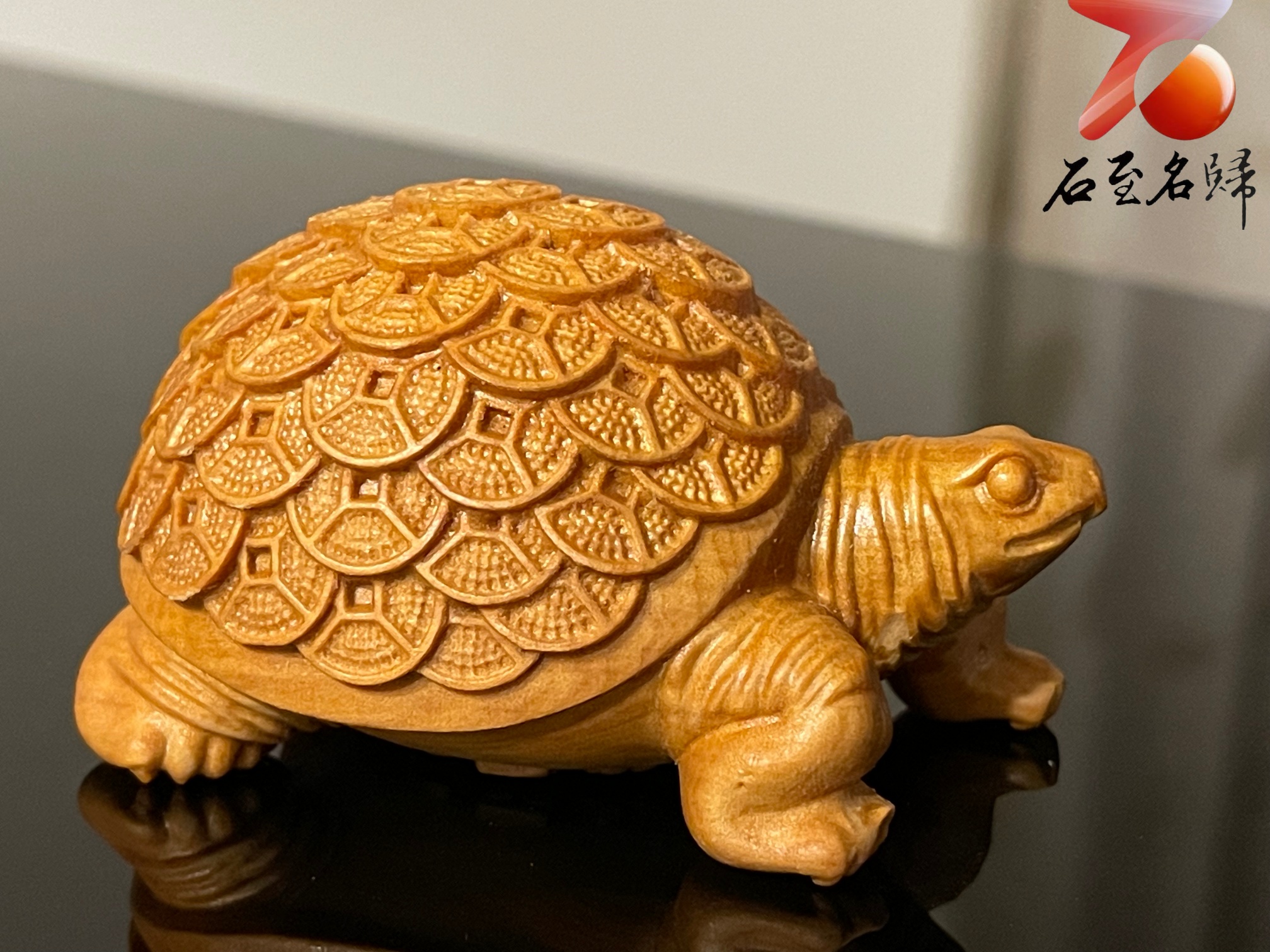 崖柏木雕件【金錢龜】長6公分