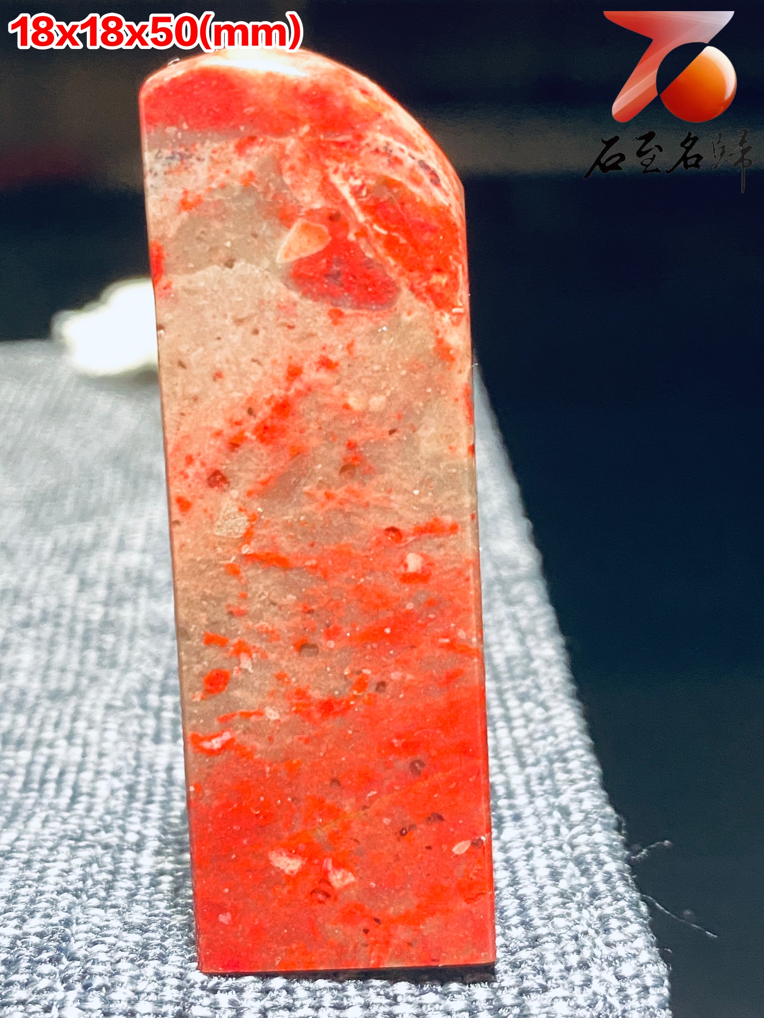 巴林粉凍雞血石印章 印面1.8x1.8 高5.2公分