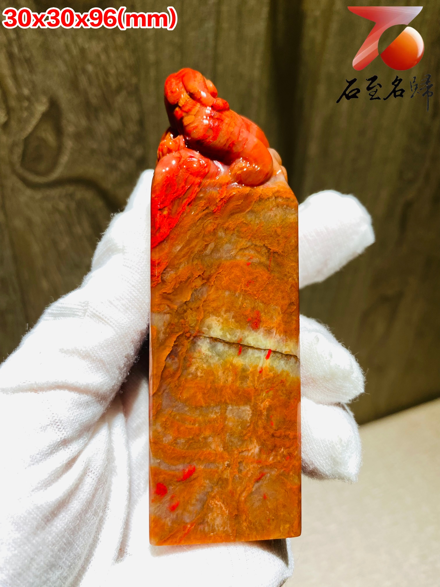 巴林軟底雞血石印章 大紅袍(表面有天然裂痕) 高96(mm)