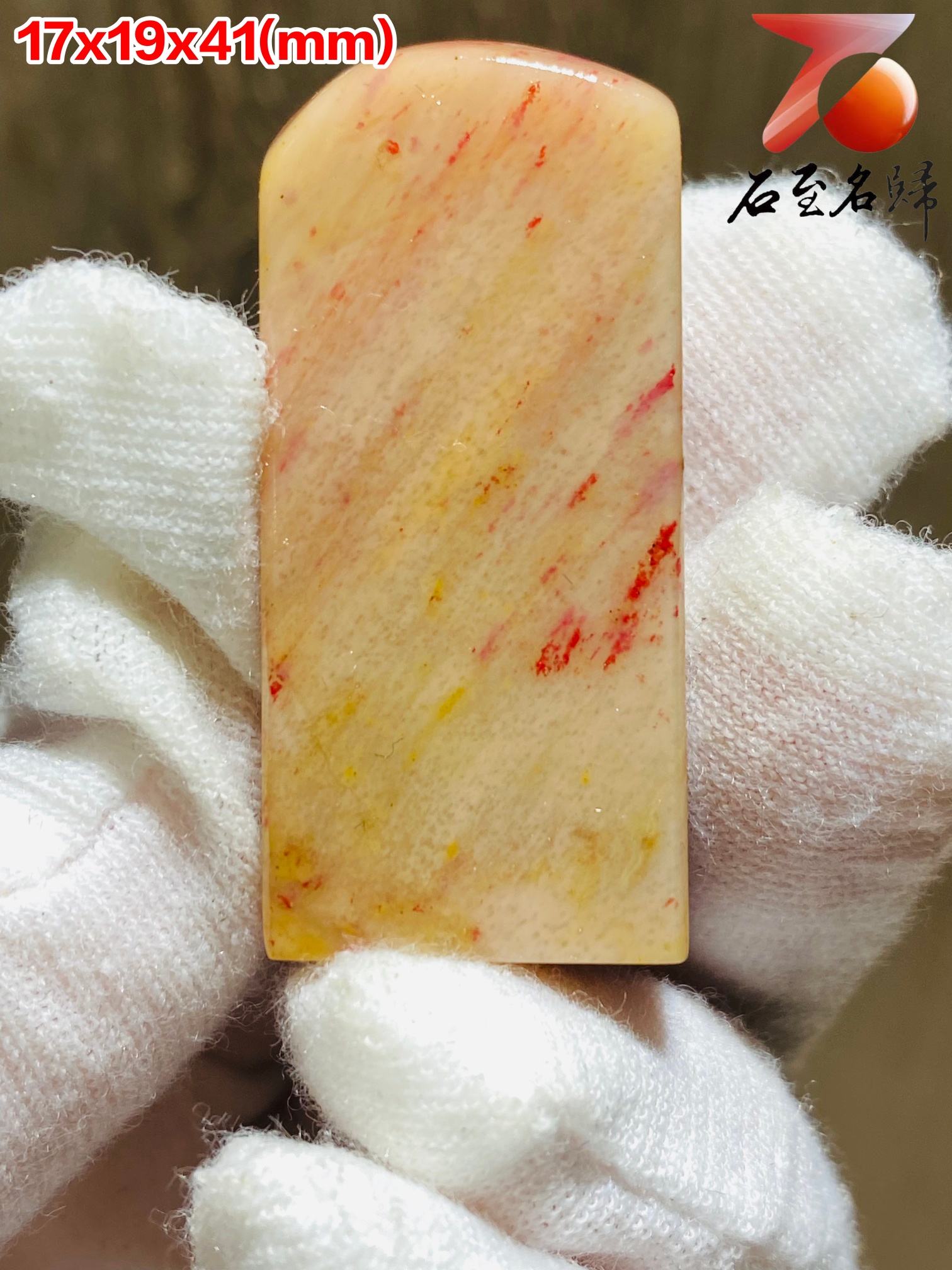 巴林福黃凍雞血石印章 印面2.1x2.1 高9公分