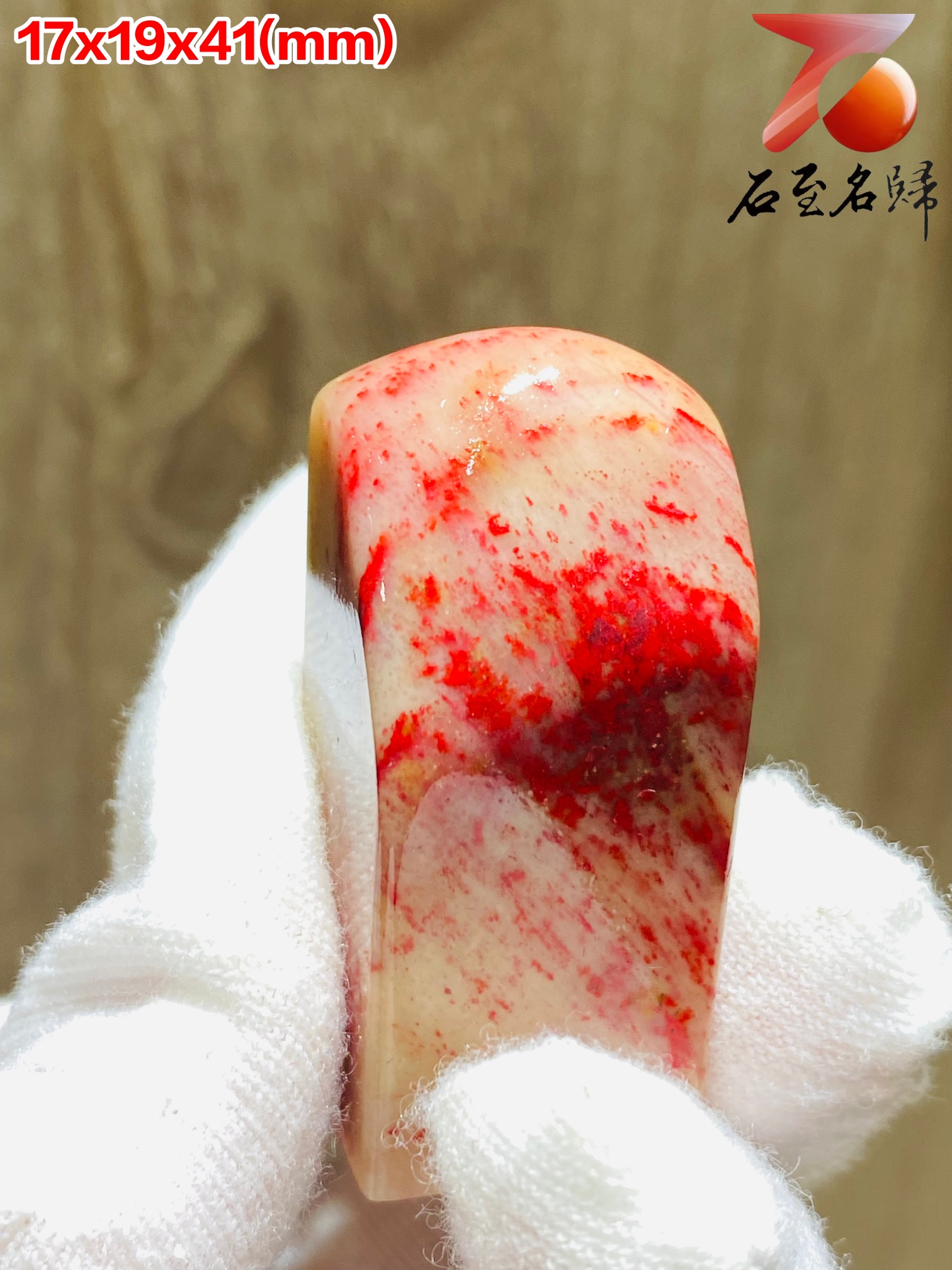 巴林粉凍雞血石印章 印面2.3x2.5公分、高5.6公分