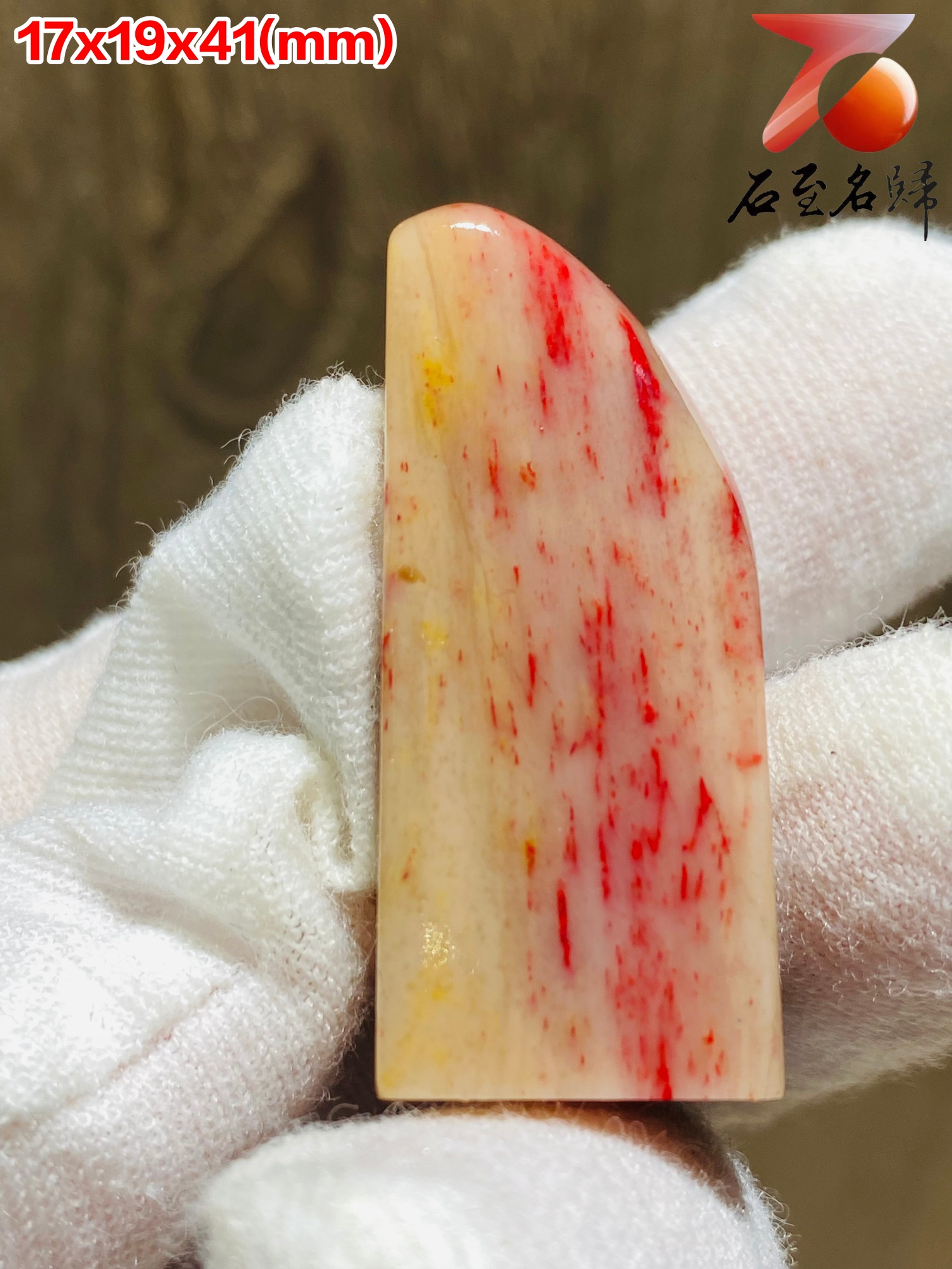 巴林女兒紅雞血石印章 印面1.26x1.26公分,高6.36公分