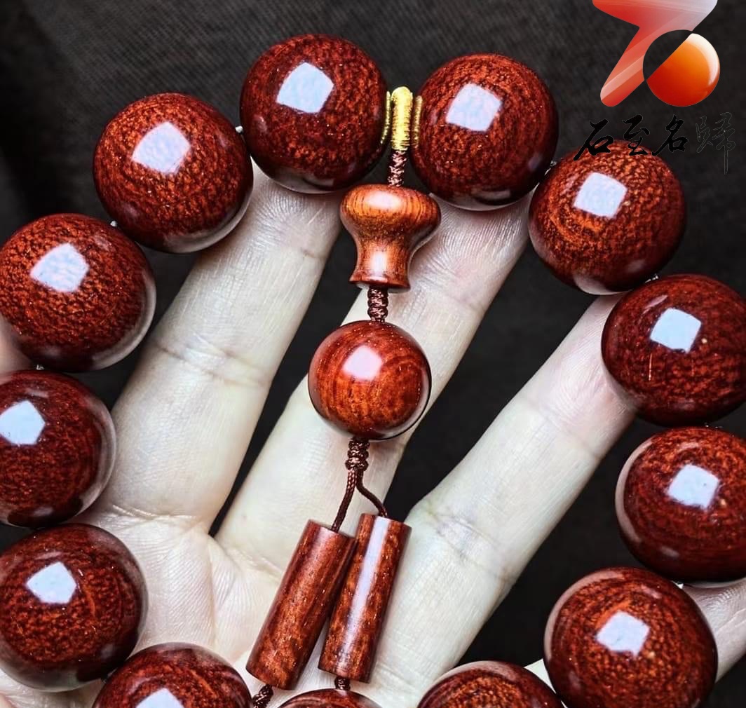 印度小葉紫檀老料 泥料雞血紅爆滿水波20mm手珠