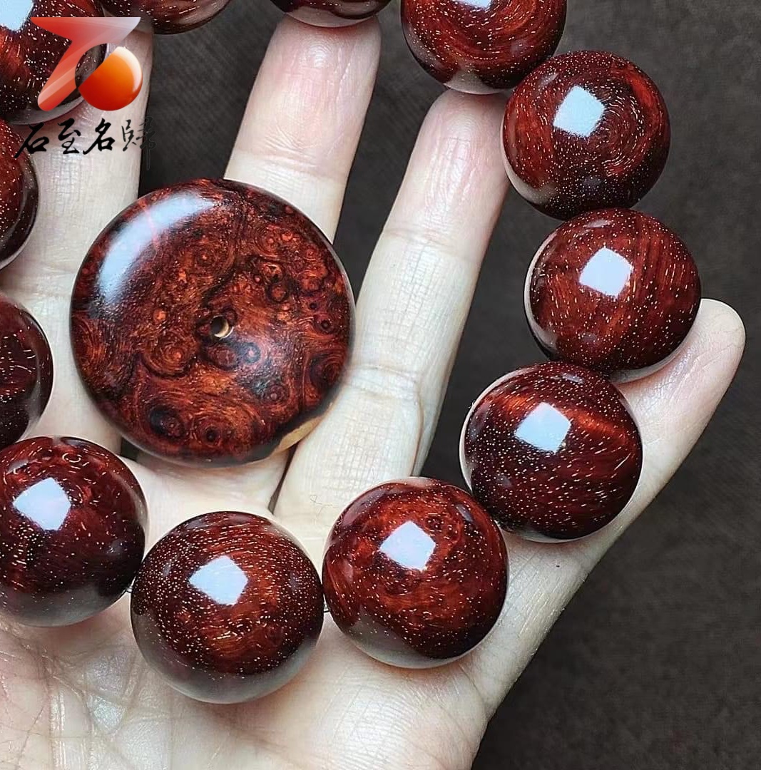 印度小葉紫檀泥料瘤疤+螺旋金星【平靜與圓滿的靈性之作-究竟涅槃】15mm手珠