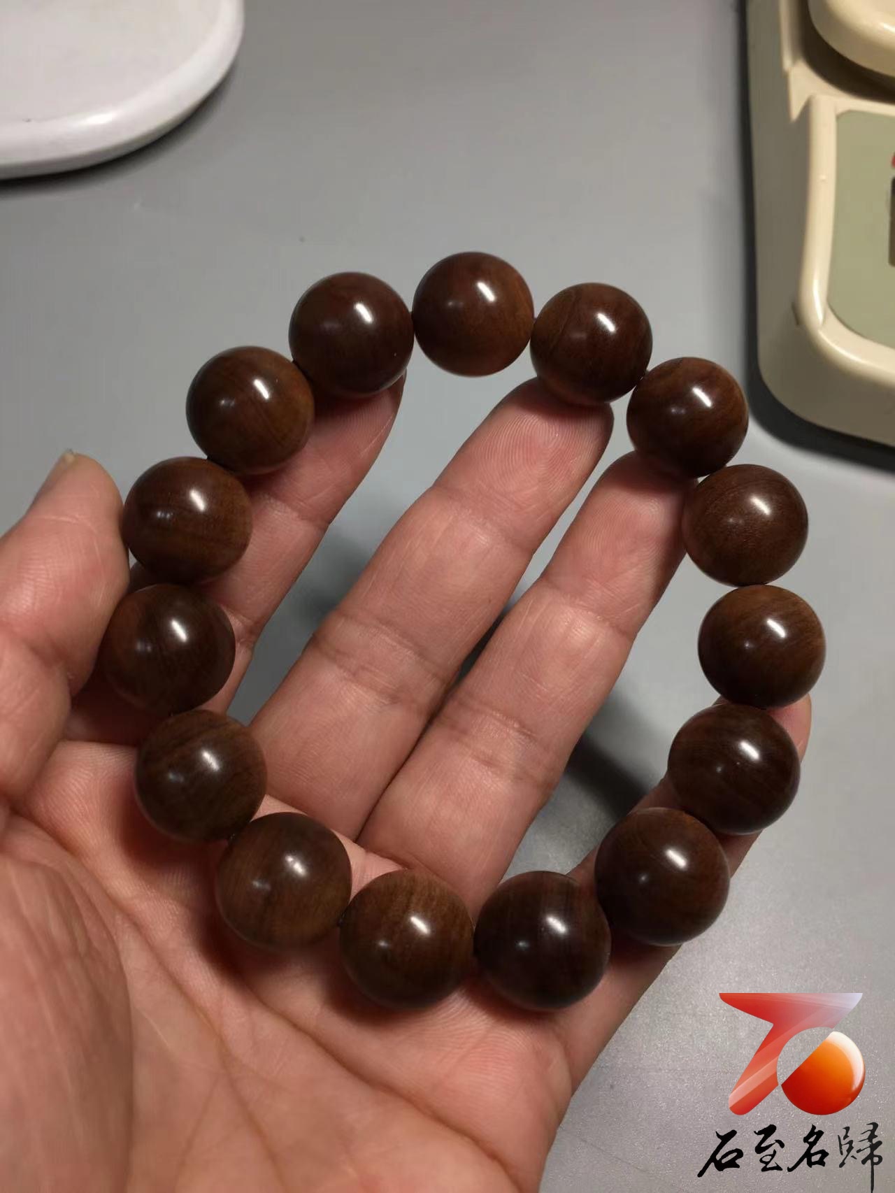 正宗印度老山檀香 虎皮紋爆黑肉沉水15mm手珠