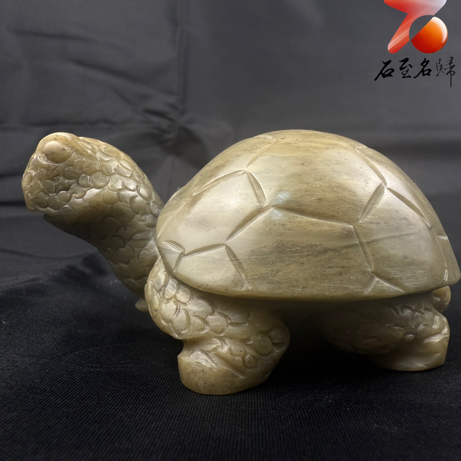 丹東石純手工雕烏龜 張國民雕刻家作品【長壽探福龜】