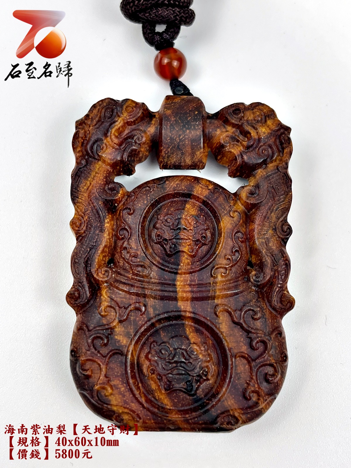 海南紫油梨掛件【天地守財】 長4公分 高6公分 厚度1公分