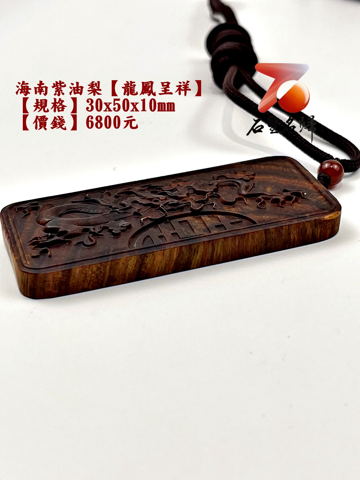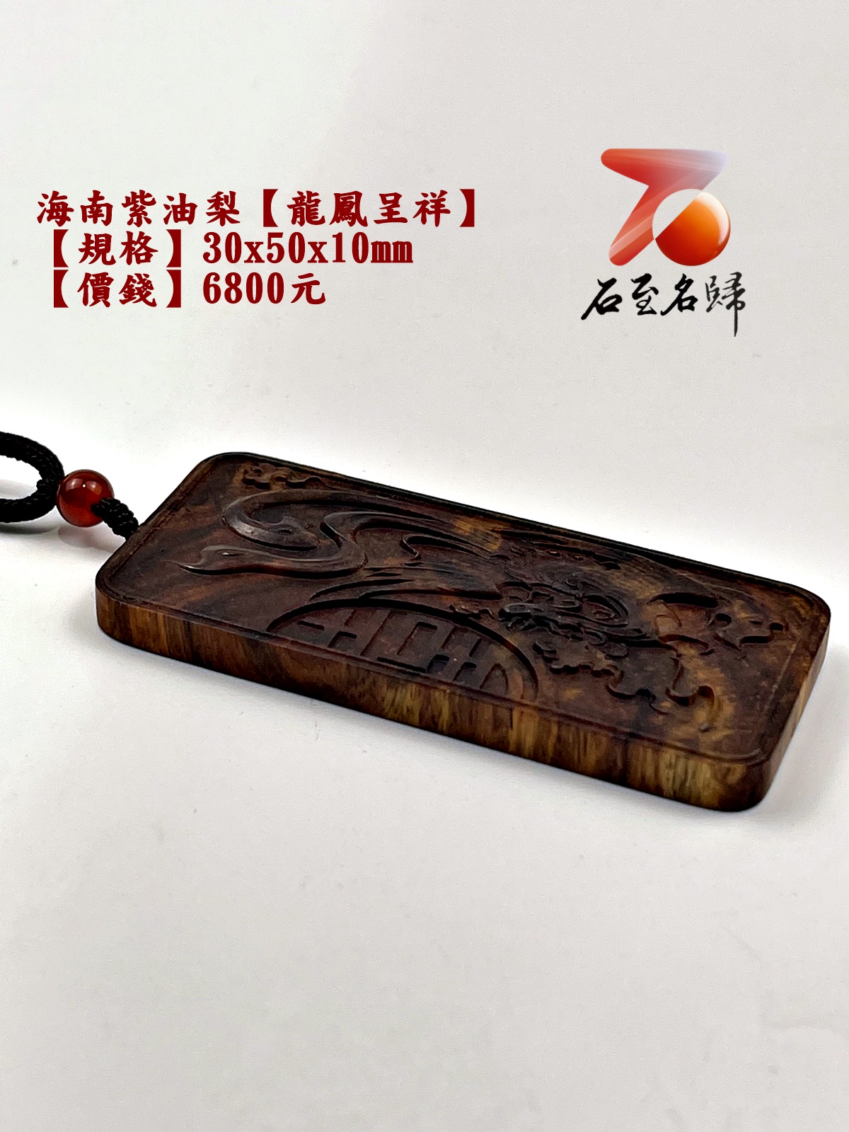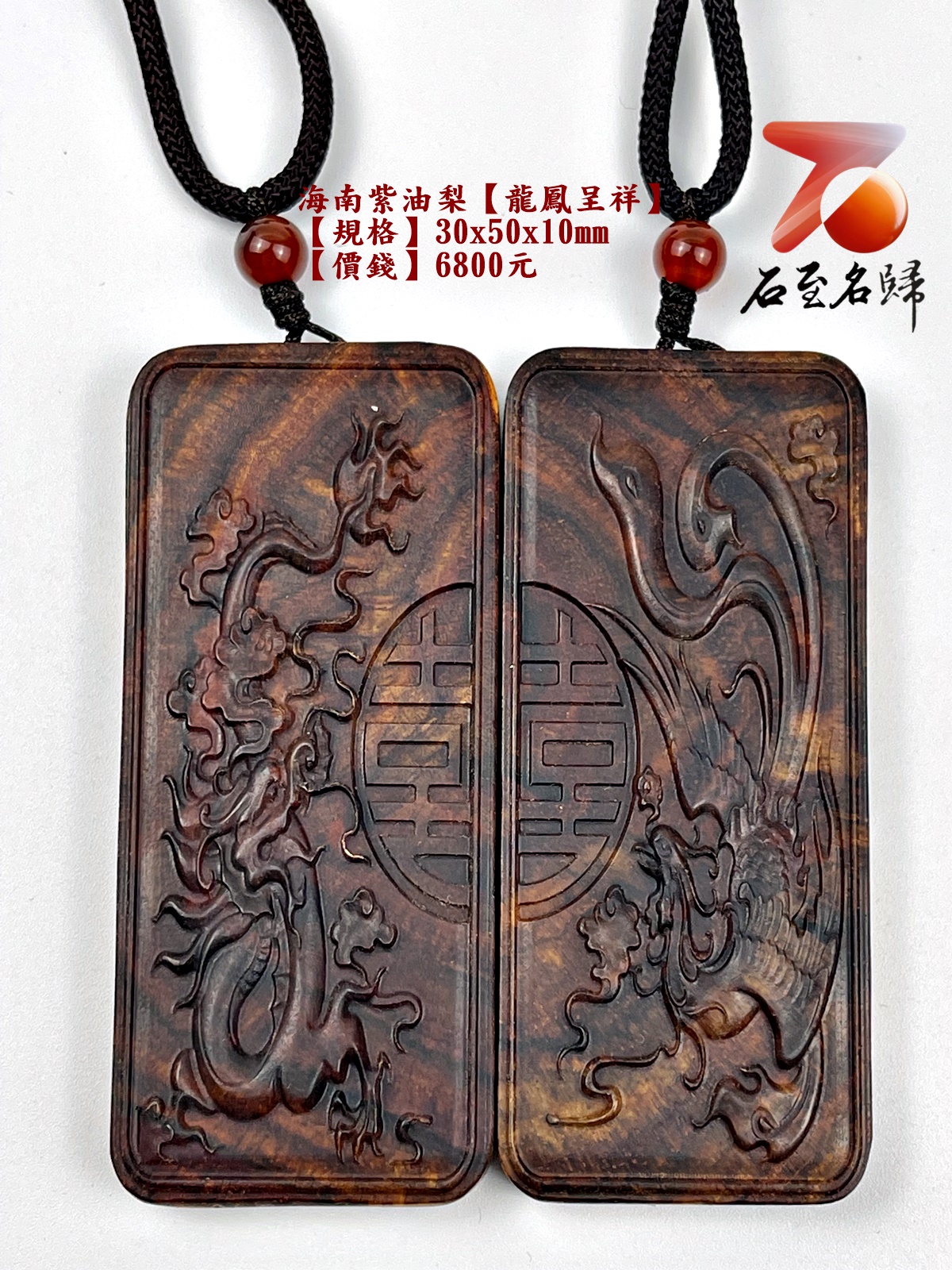 海南紫油梨掛件【龍鳳呈祥】 長3公分 高5公分 厚度1公分