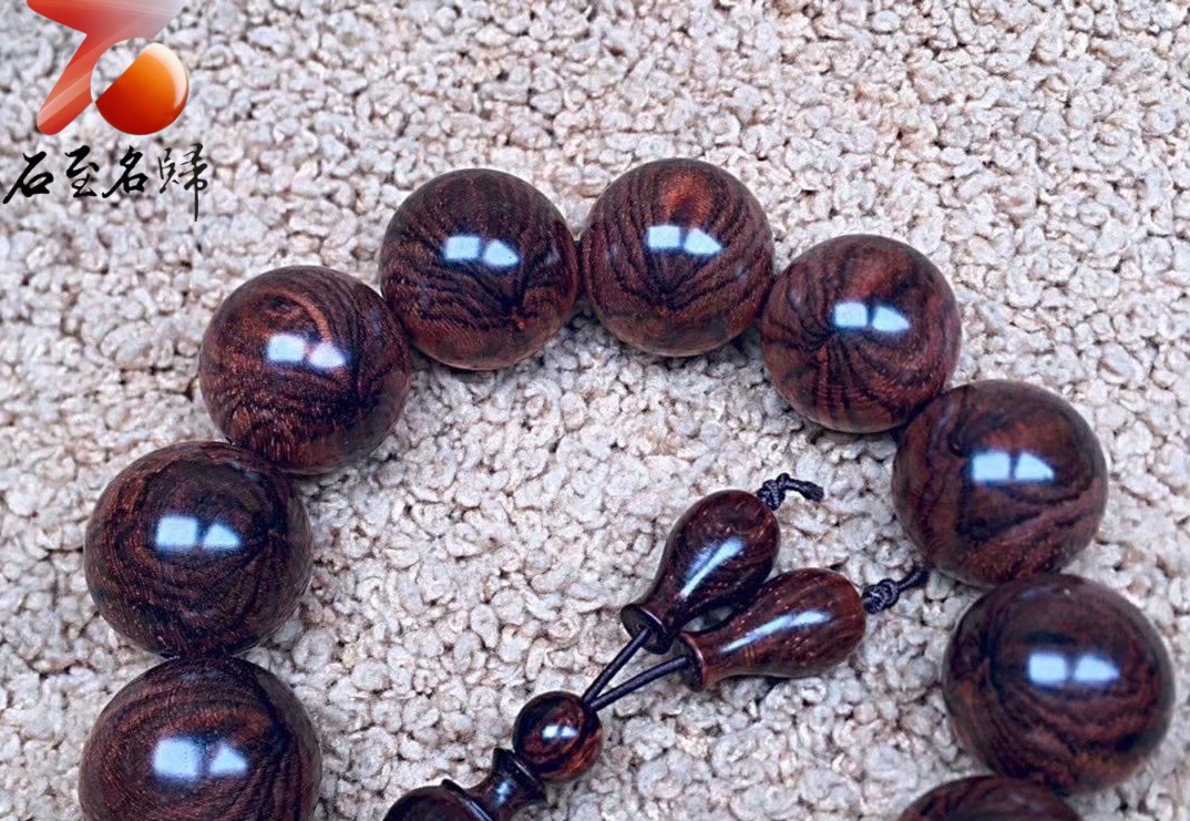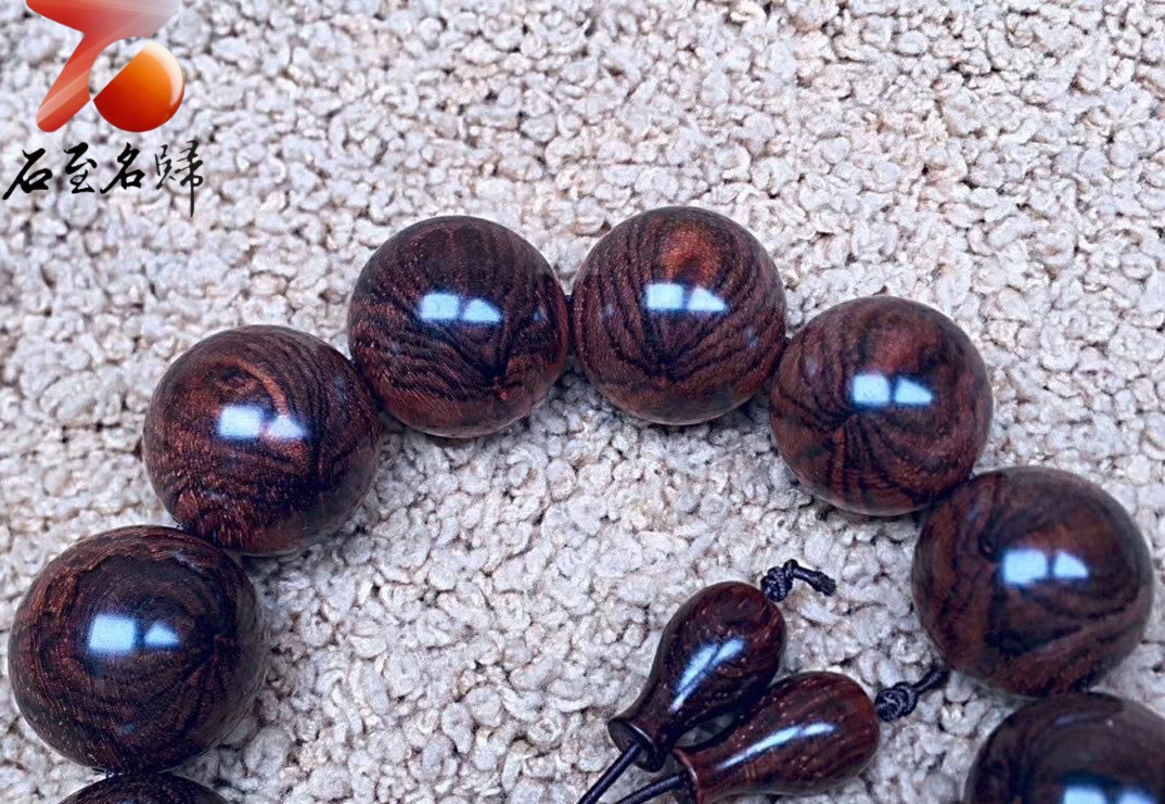 臻藏 海南黃花梨老料 極品七彩水波紋+瘤疤花18mm手珠 重量48.2克